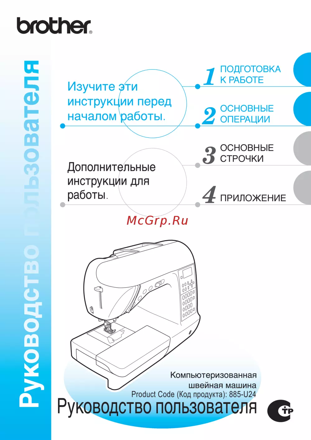 - Благодарим вас за покупку этой швейной машины перед началом эксплуатации швейной машины внимательно прочитайте раздел инструкции по технике безопасности с 1 а затем изучите настоящее руководство чтобы правильно использовать различные функции машины и выполнять различные операции храните руководство в легкодоступном месте чтобы при необходимости получить всю необходимую информацию p.9