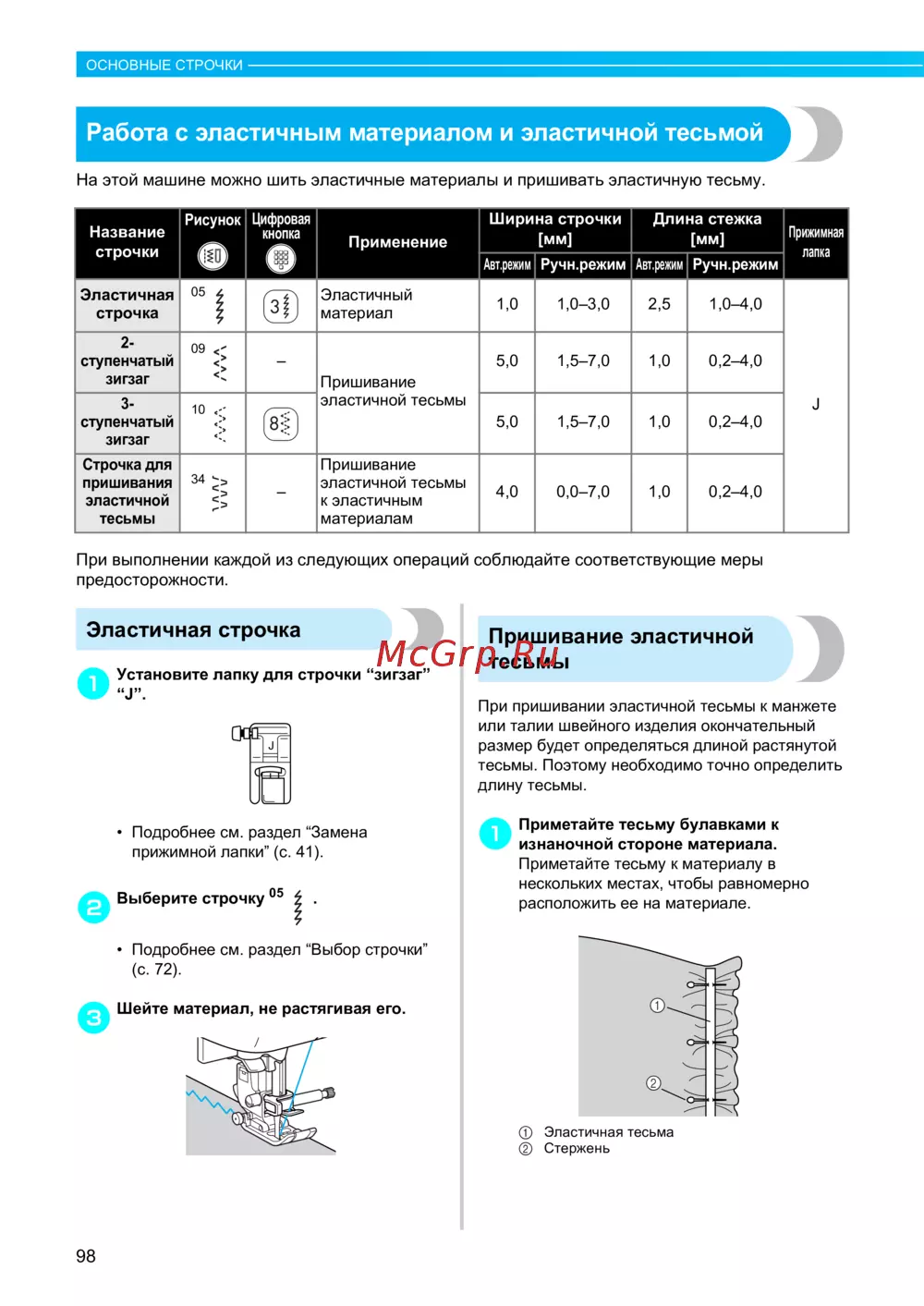 Brother INNOV-'IS NV-550 SE (SPECIAL EDITION) — работа с эластичными материалами и тесьмой: советы и техники [100/172]
