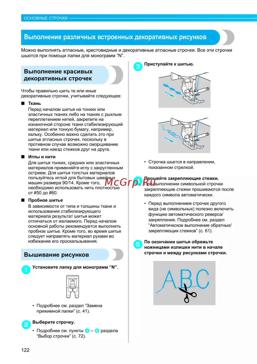 ![Brother INNOV-'IS NV-550 SE (SPECIAL EDITION) [124/172] Можно выполнять атласные крестовидные и декоративные атласные строчки все эти строчки шьются при помощи лапки для монограмм n](/views2/1315420/page124/bg7c.png)
