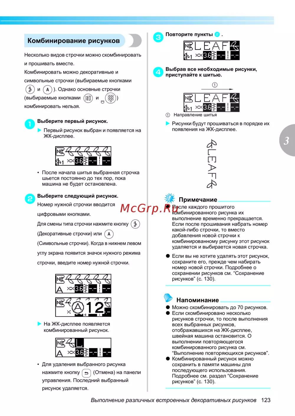 Brother INNOV-'IS NV-550 SE (SPECIAL EDITION) — комбинирование декоративных строчек для шитья [125/172]