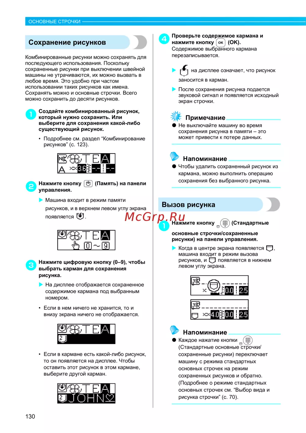 сохраненные рисунки при выключении швейной