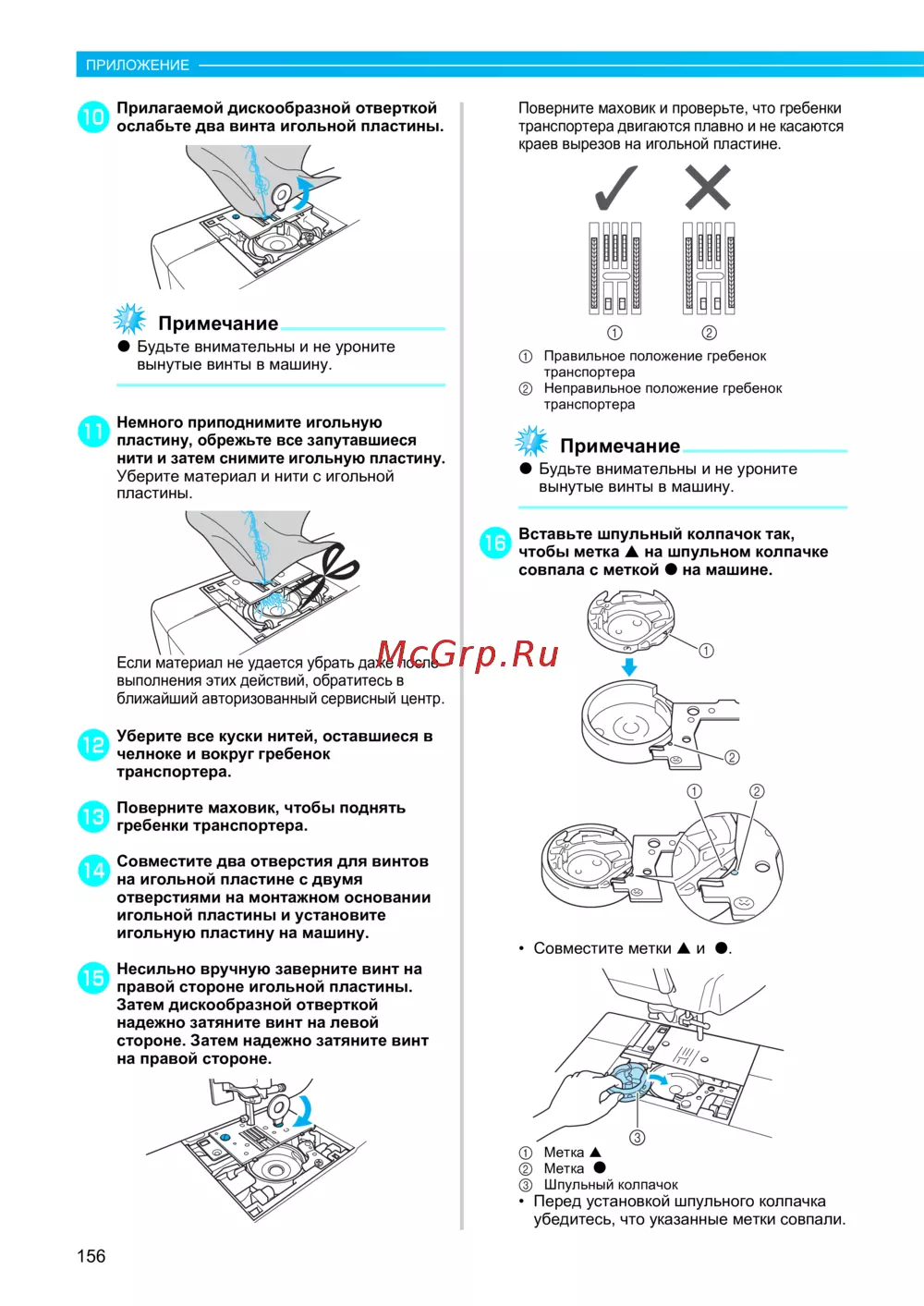- Запрещается использовать шпульный колпачок если на нем имеются царапины это может привести к запутыванию верхней нити поломке иглы или ухудшению характеристик машины новый шпульный колпачок номер по каталогу xc3153 321 можно приобрести в ближайшем авторизованном сервисном центре убедитесь что шпульный колпачок вставлен правильно так как в противном случае игла может сломаться p.159