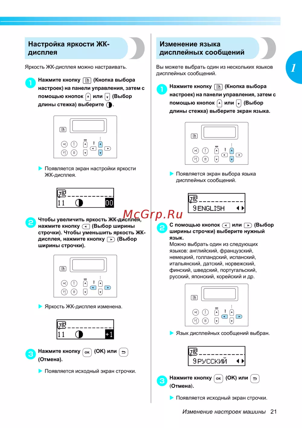 Узнайте, как легко изменить яркость ЖК-дисплея и выбрать язык дисплейных сообщений на вашем устройстве. Простые шаги для настройки.