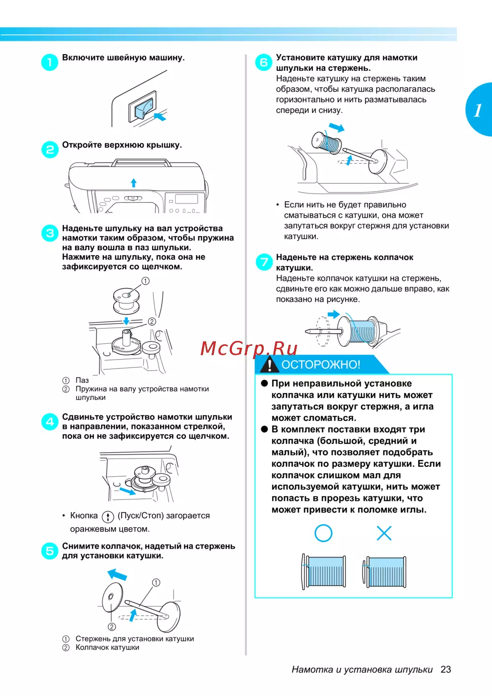 - Запрещается использовать шпульный колпачок если на нем имеются царапины это может привести к запутыванию верхней нити поломке иглы или ухудшению характеристик машины новый шпульный колпачок номер по каталогу xc3153 321 можно приобрести в ближайшем авторизованном сервисном центре убедитесь в правильной установке шпульного колпачка в противном случае возможна поломка иглы p.152