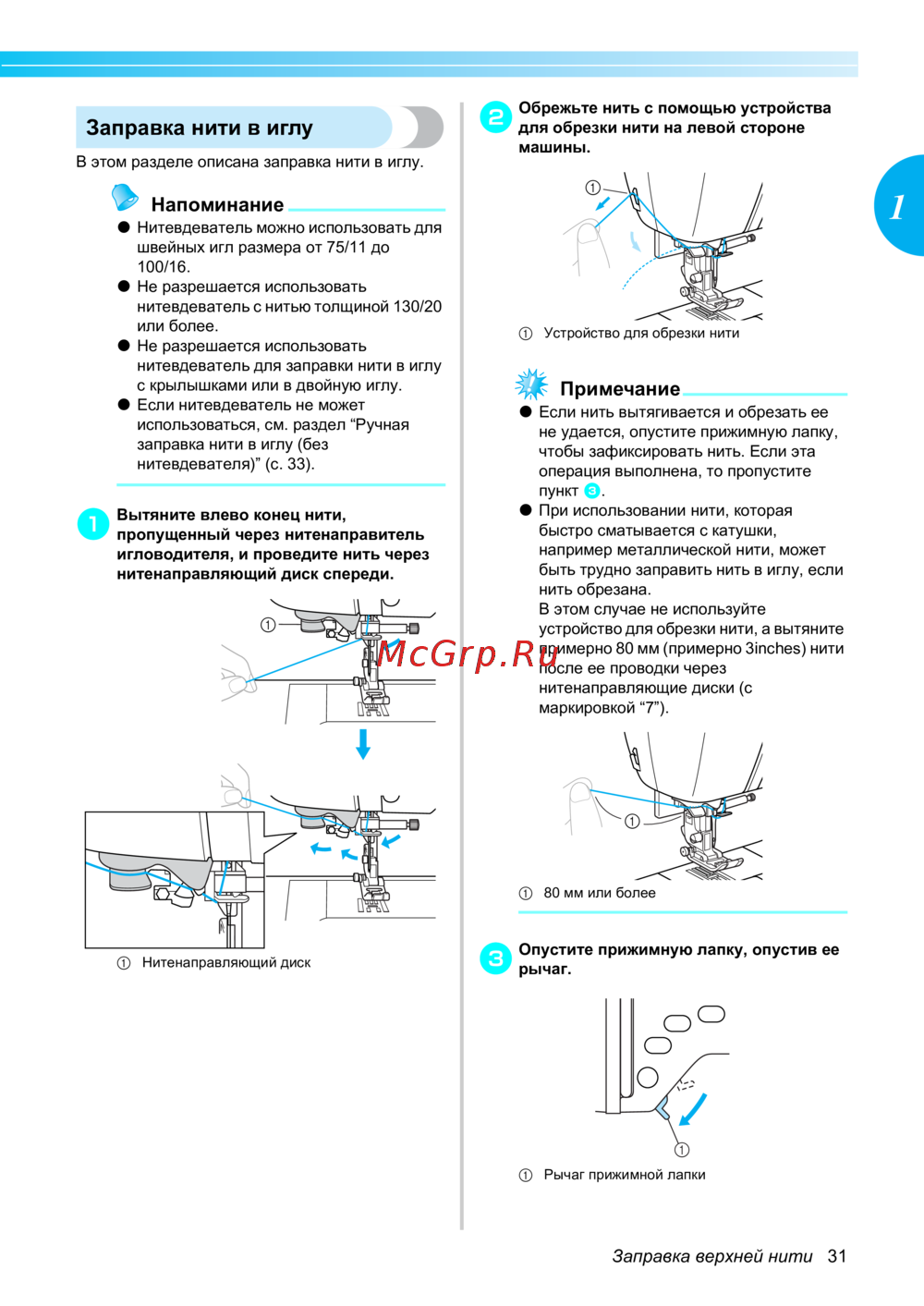 - Благодарим вас за покупку этой швейной машины перед началом эксплуатации швейной машины внимательно прочитайте раздел инструкции по технике безопасности с 1 а затем изучите настоящее руководство чтобы правильно использовать различные функции машины и выполнять различные операции храните руководство в легкодоступном месте чтобы при необходимости получить всю необходимую информацию p.9