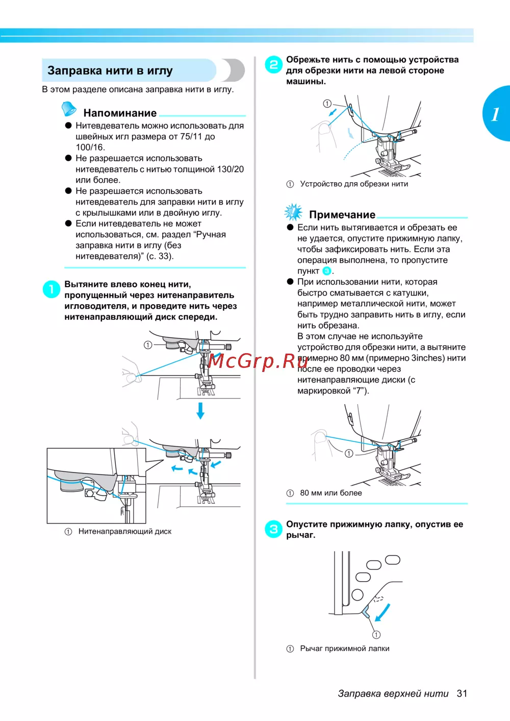Узнайте, как правильно заправить верхнюю нить в иглу швейной машины с помощью нитевдевателя и вручную. Полезные советы и рекомендации для успешной заправки.