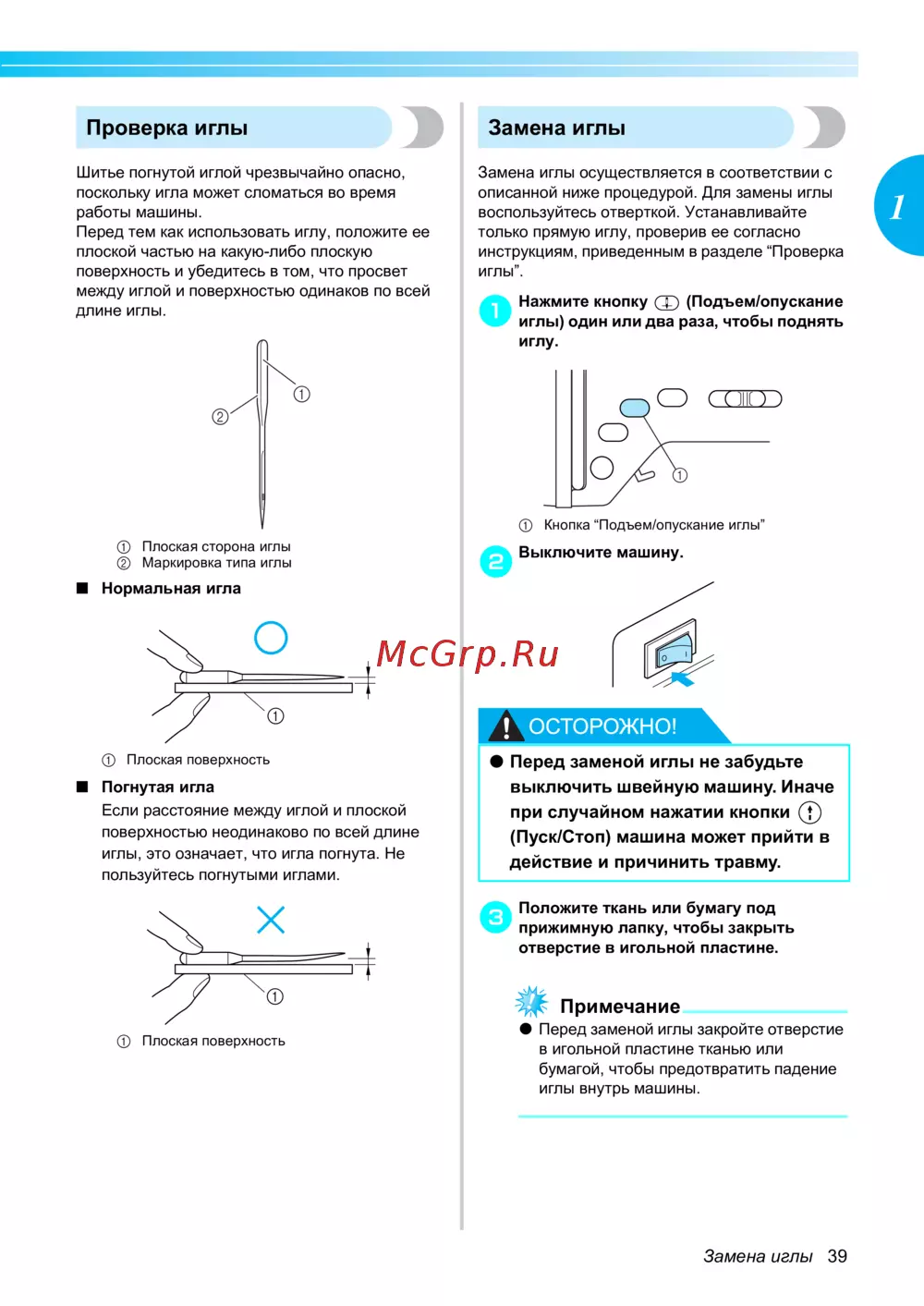 Замена иглы 39