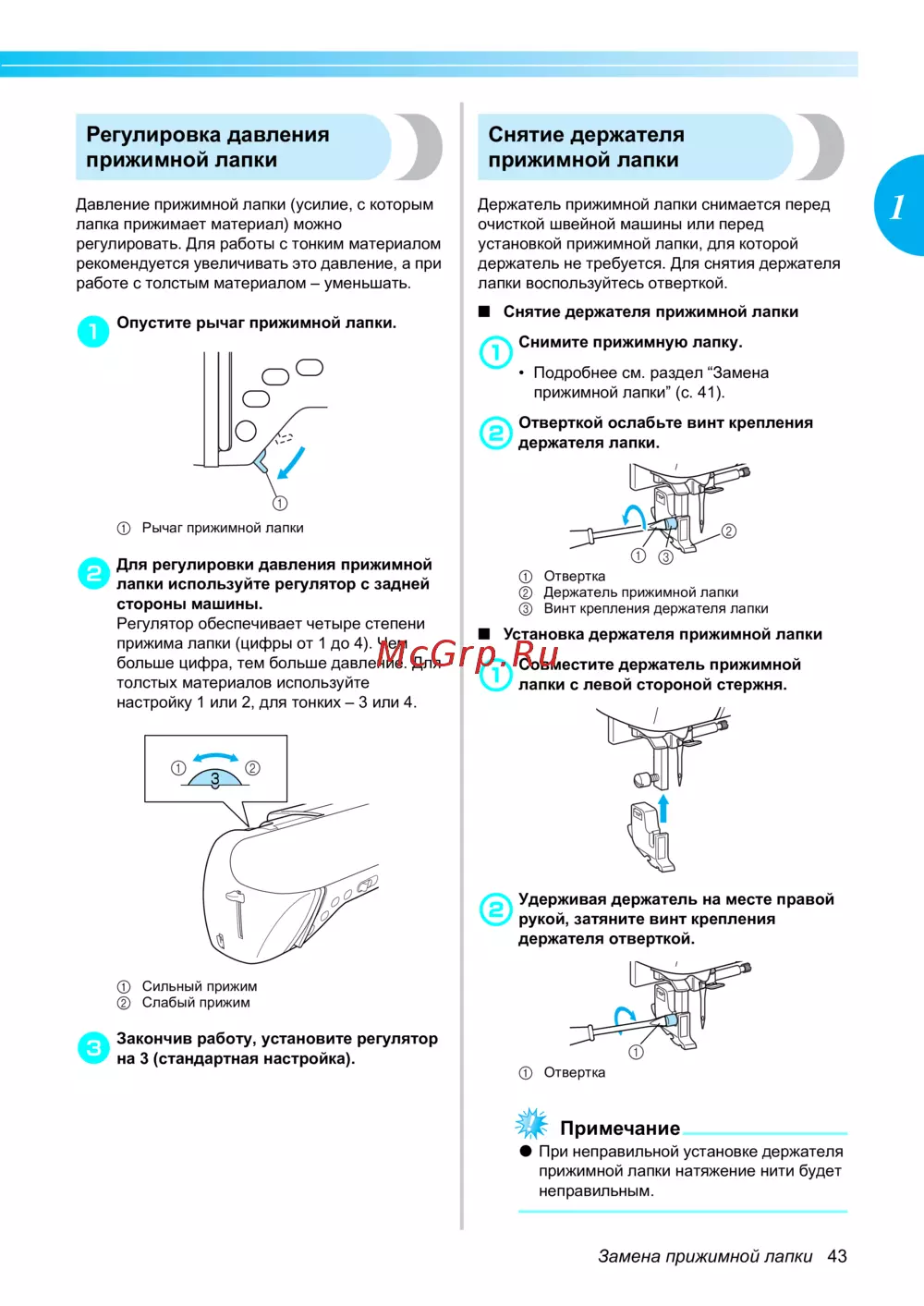 Узнайте, как правильно регулировать давление прижимной лапки и заменять её на швейной машине. Подробные инструкции и советы для работы с различными материалами.