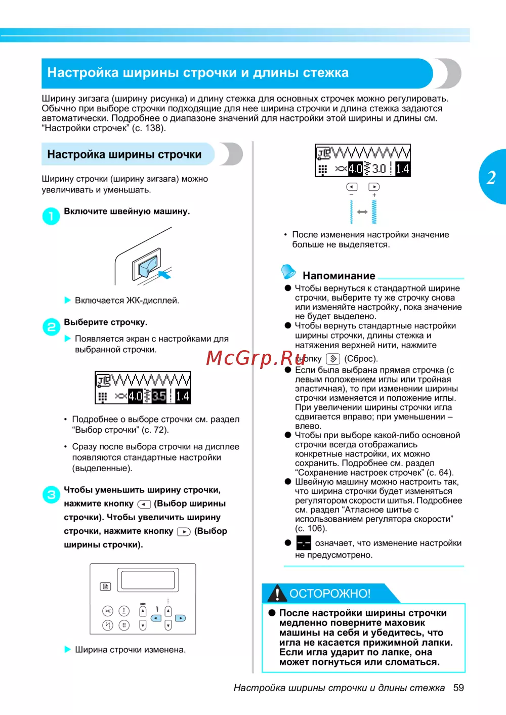 Настройка ширины строчки и длины стежка 59