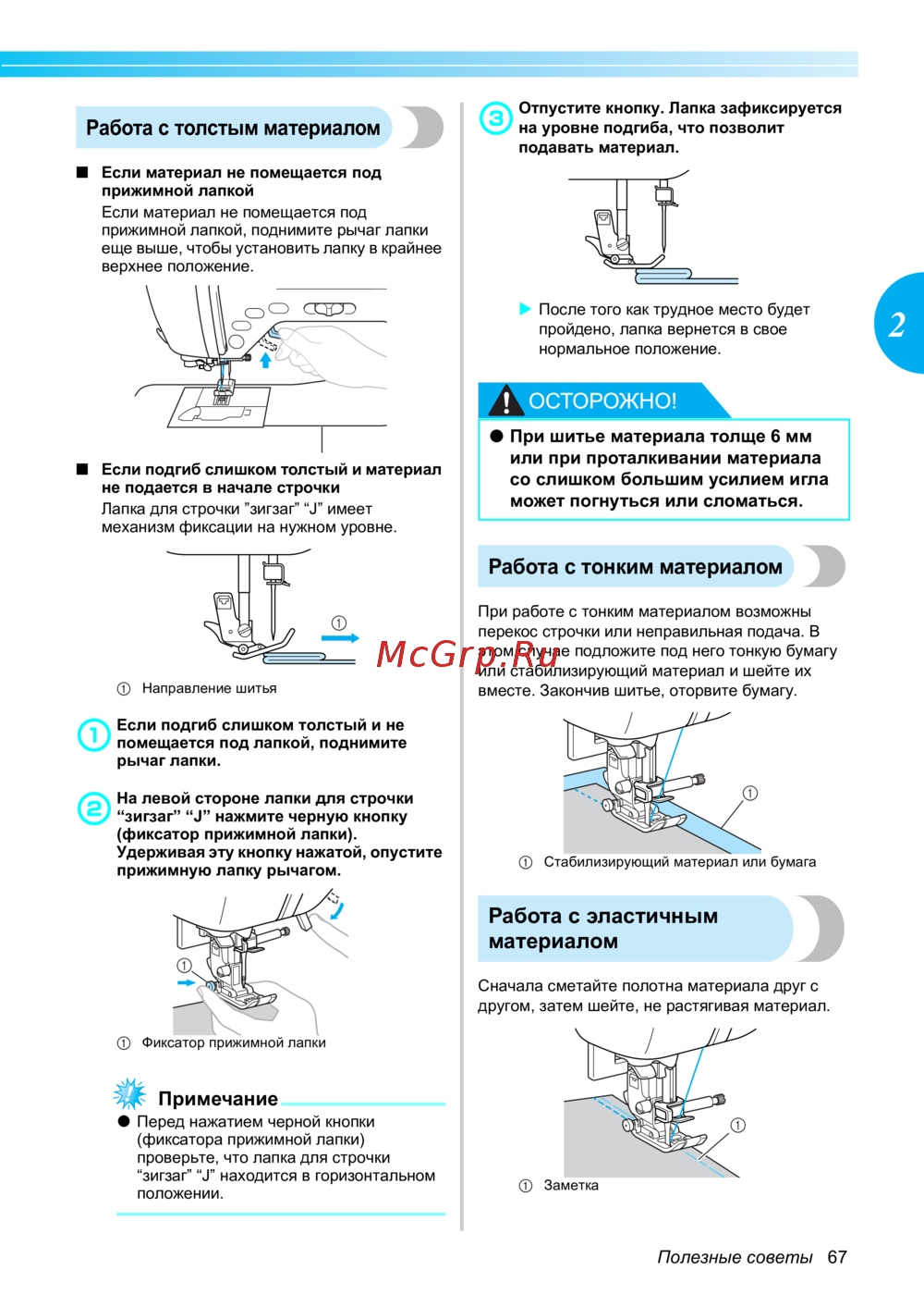 Brother INNOV-'IS NV-550 SE (SPECIAL EDITION) — полезные советы по шитью: работа с различными материалами [69/172]
