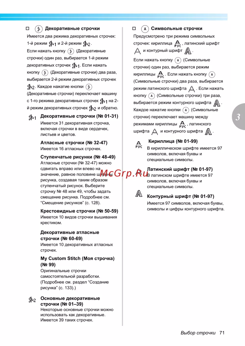 Brother INNOV-'IS NV-550 SE (SPECIAL EDITION) — обзор декоративных и символьных строчек для швейных машин [73/172]