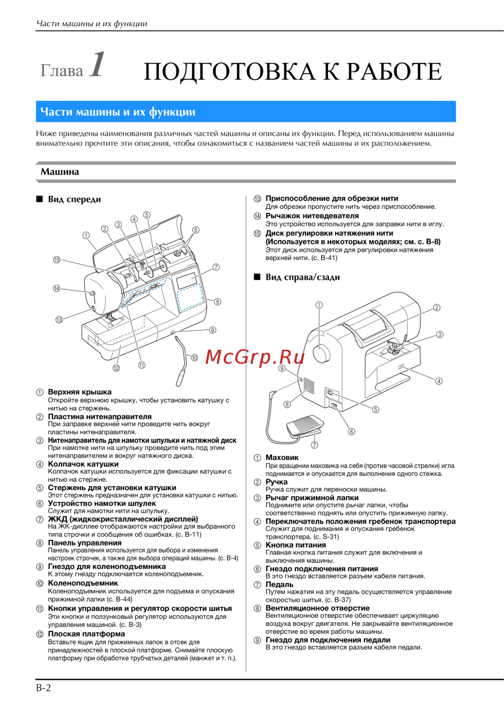 внимательно прочтите эти описания, чтобы ознакомиться с названием частей машины и их расположением.