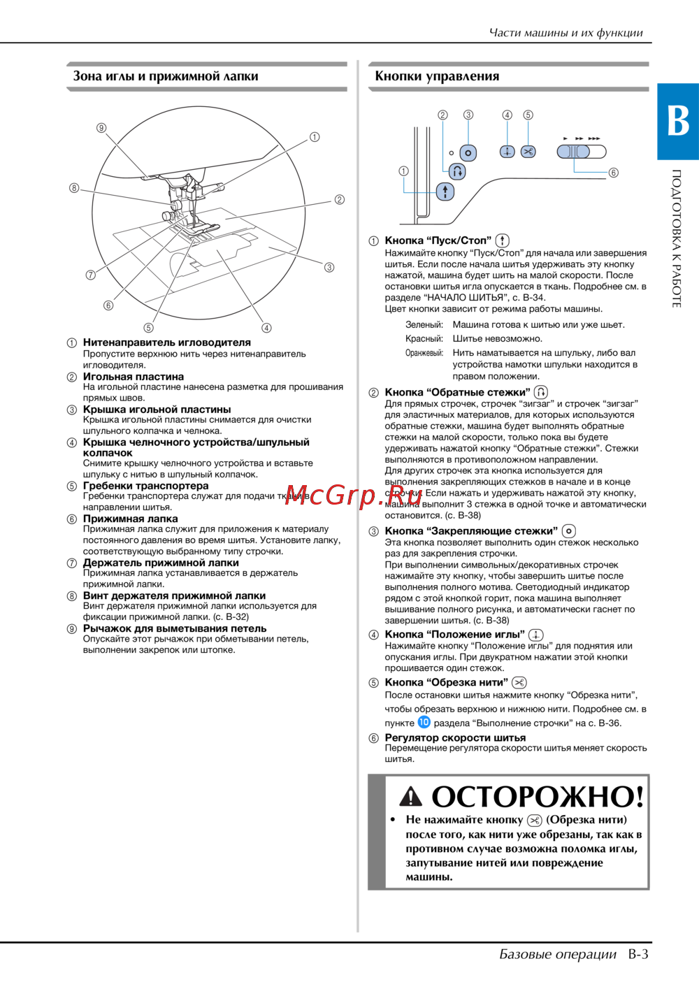 разделе “НАЧАЛО ШИТЬЯ”, с. B-34.