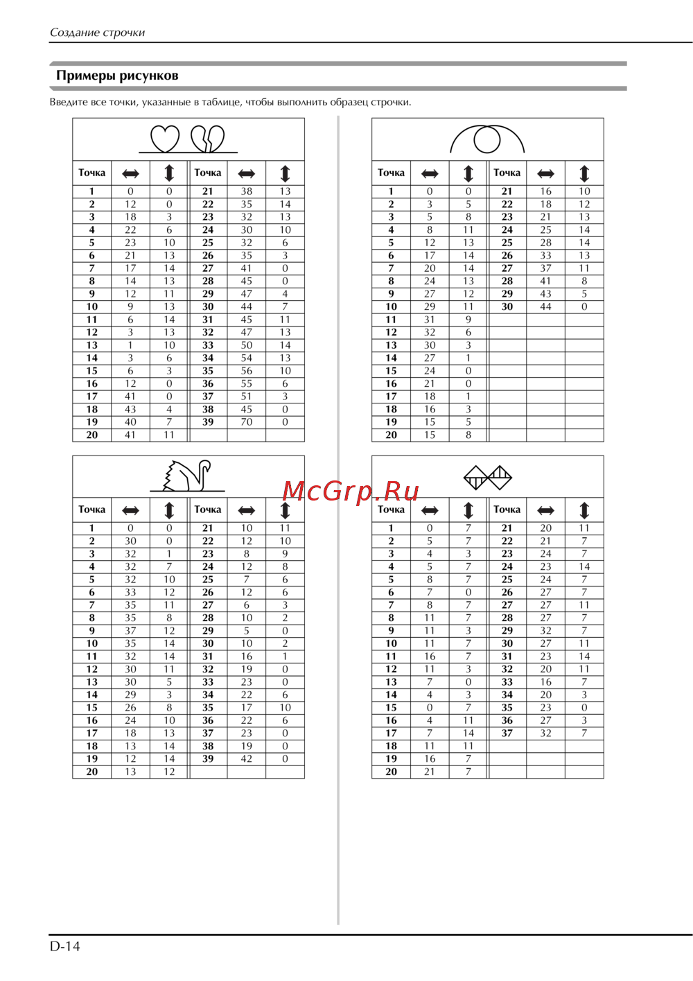 Введите все точки, указанные в таблице, чтобы выполнить образец строчки.