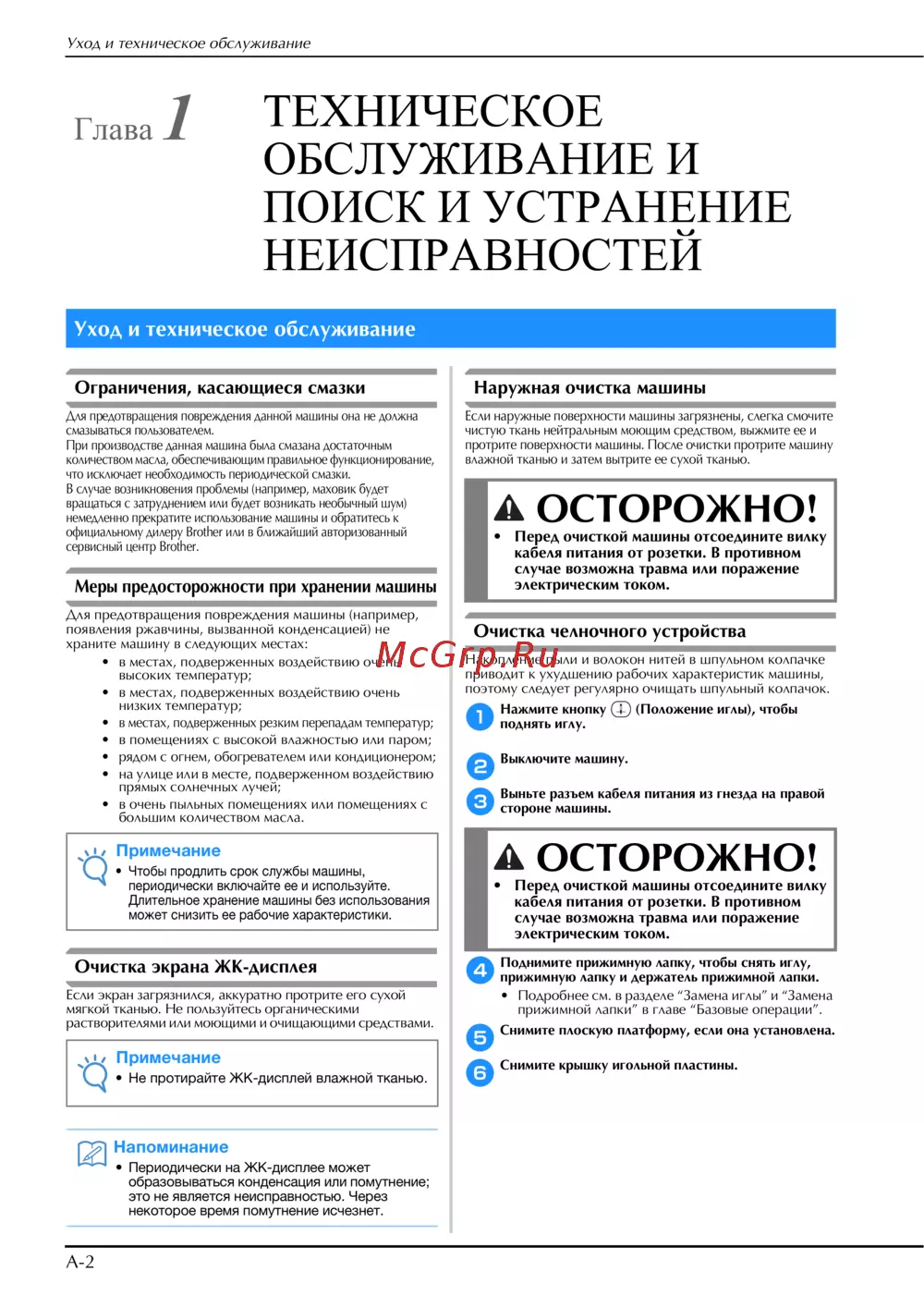 Brother INNOV-IS F420 — уход и техническое обслуживание швейной машины: советы и рекомендации [120/144]