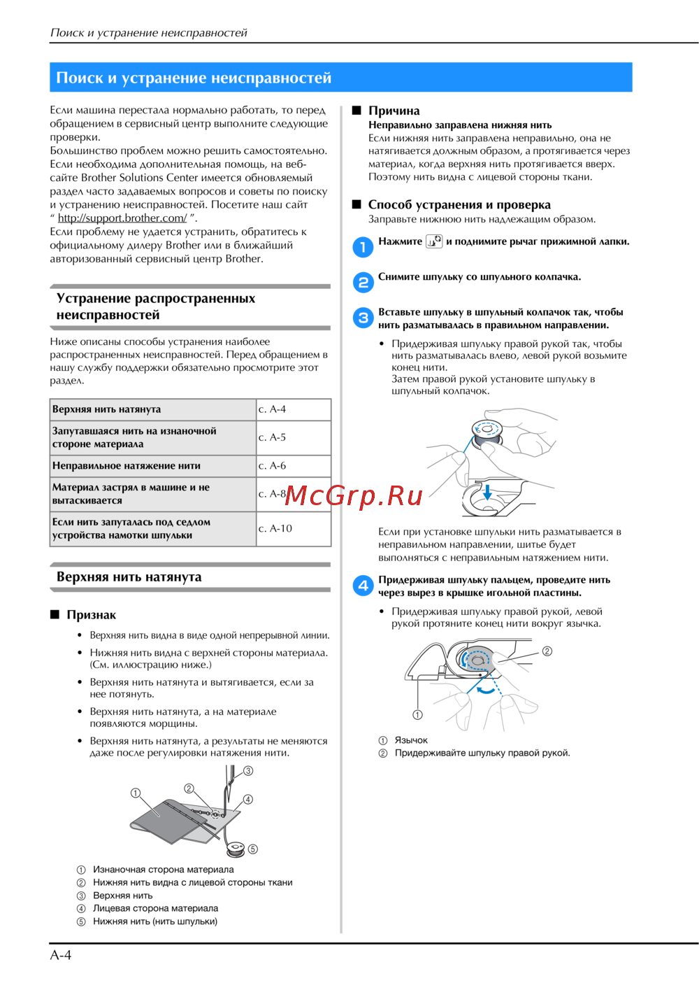 Brother INNOV-IS F420 — поиск и устранение неисправностей швейной машины [122/144]
