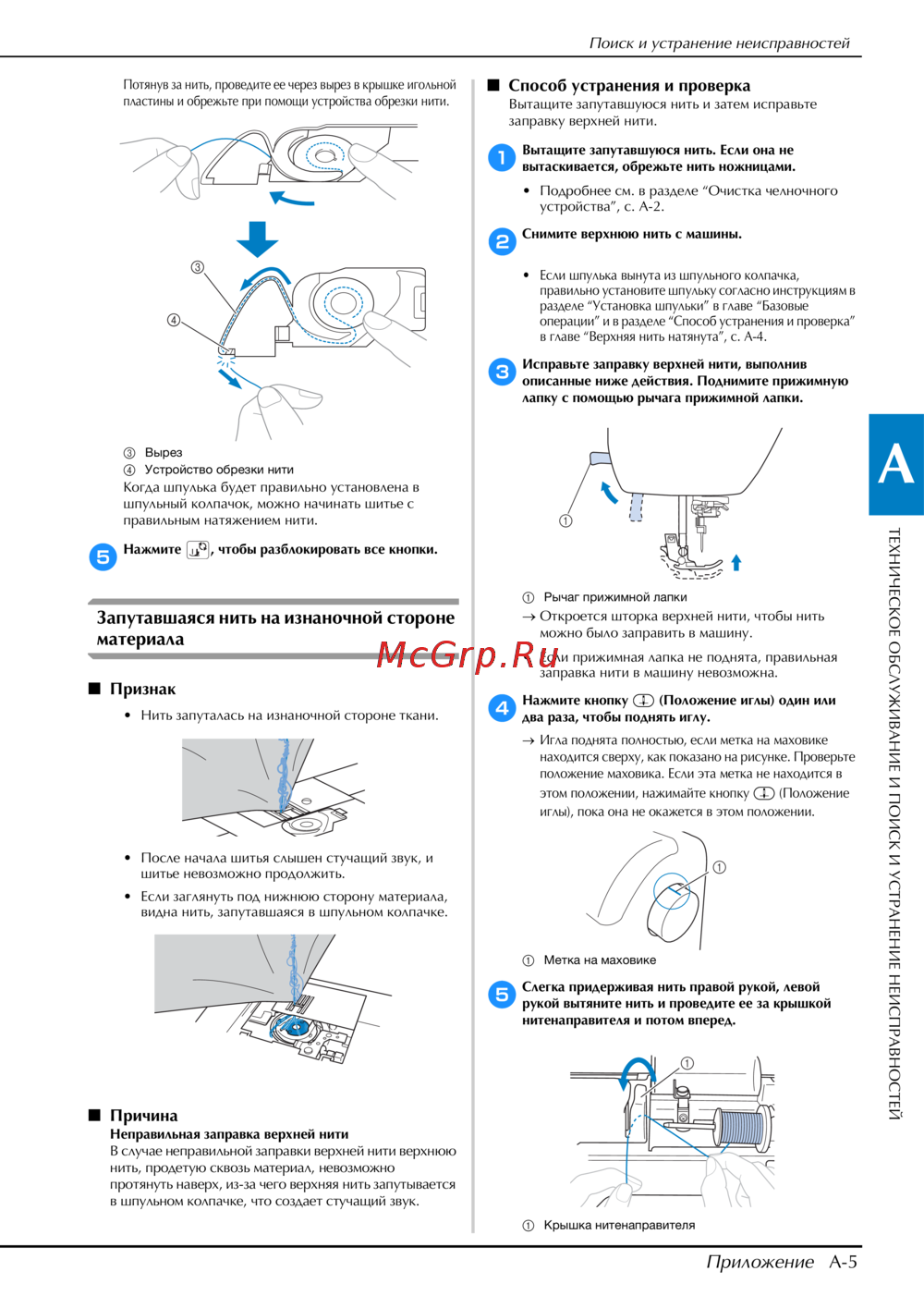 - Машина заблокирована например из за того что запуталась нить p.138