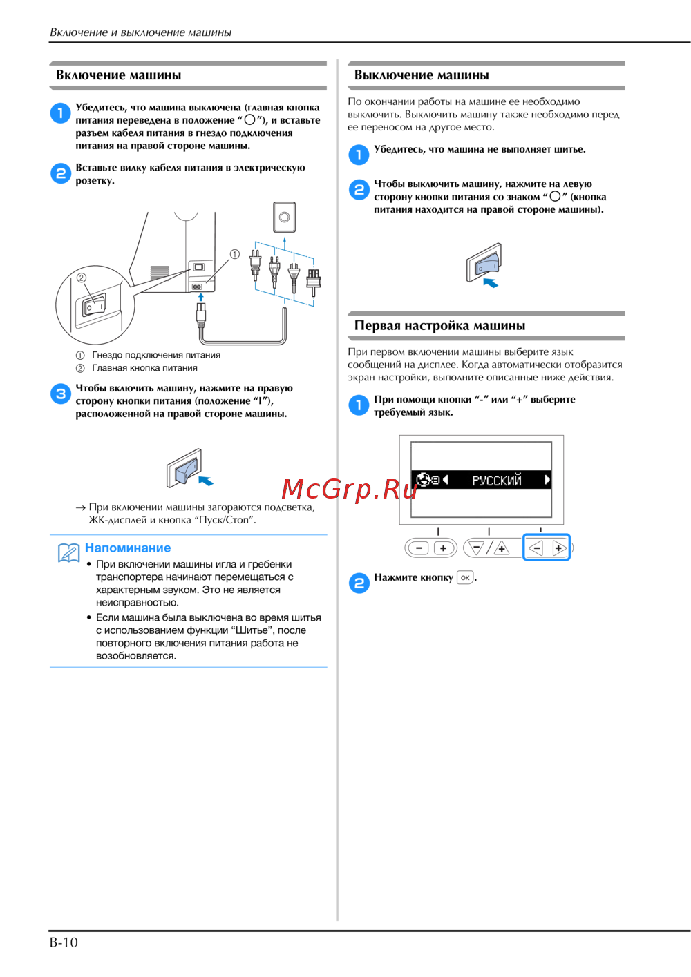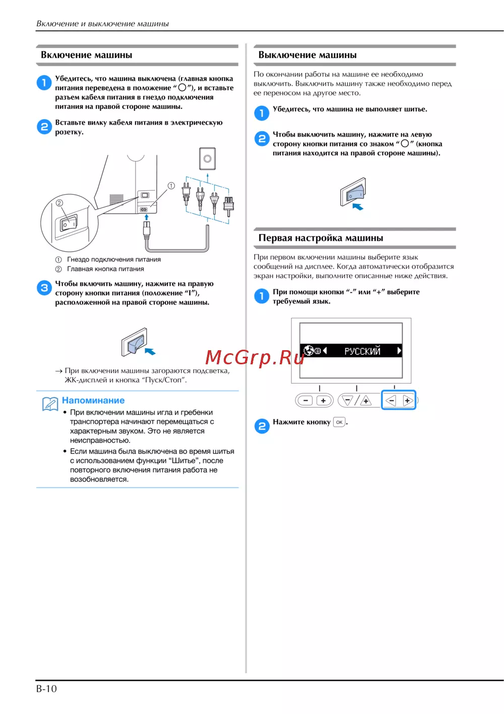 Brother INNOV-IS F420 — инструкция по включению и выключению швейной машины [18/144]