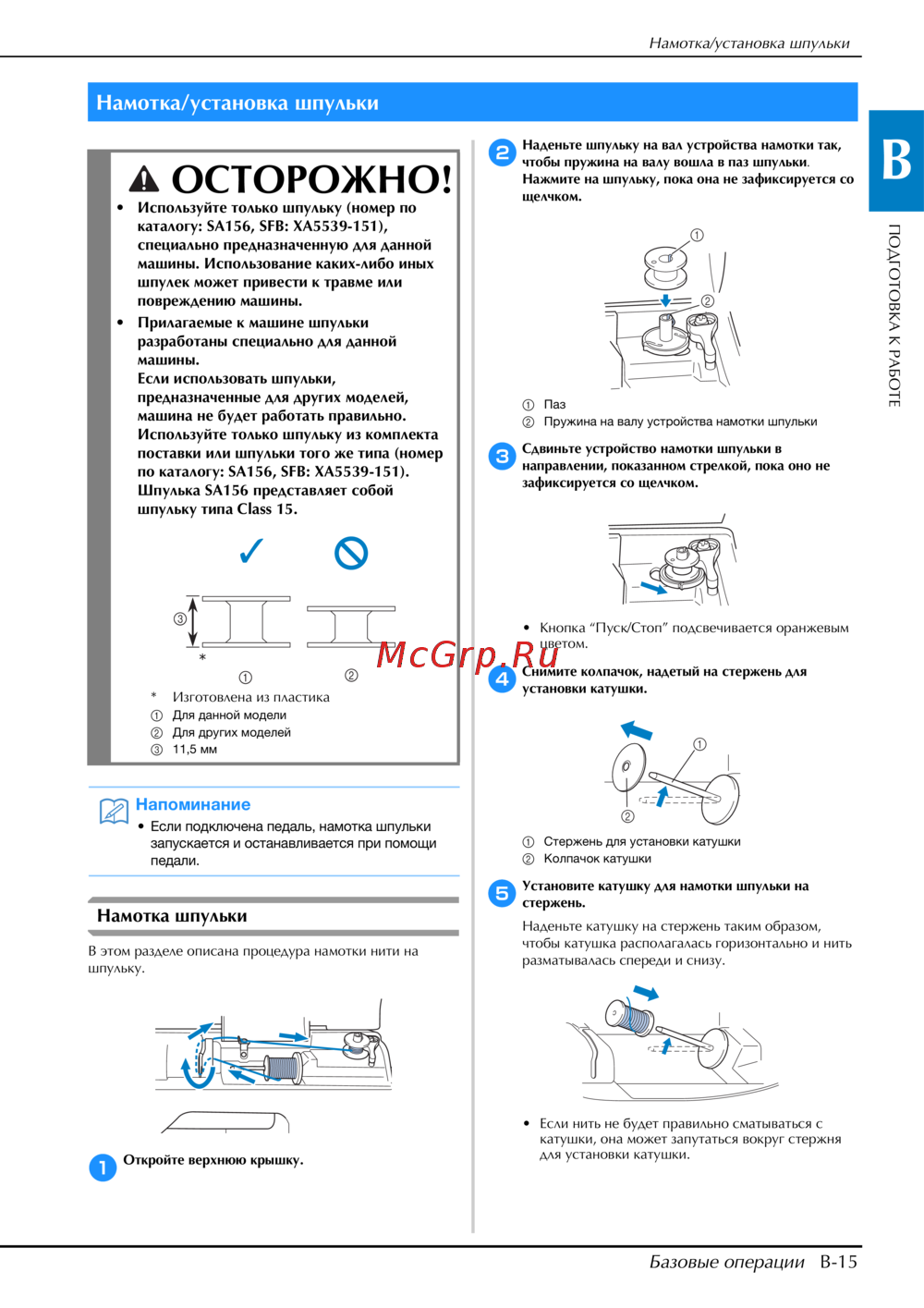 - Не снимайте седло устройства намотки шпульки даже если нить запуталась под ним это может привести к травме не выворачивайте винт направляющего стержня устройства намотки шпульки так как в противном случае возможно повреждение машины невозможно размотать нить вывернув винт p.128