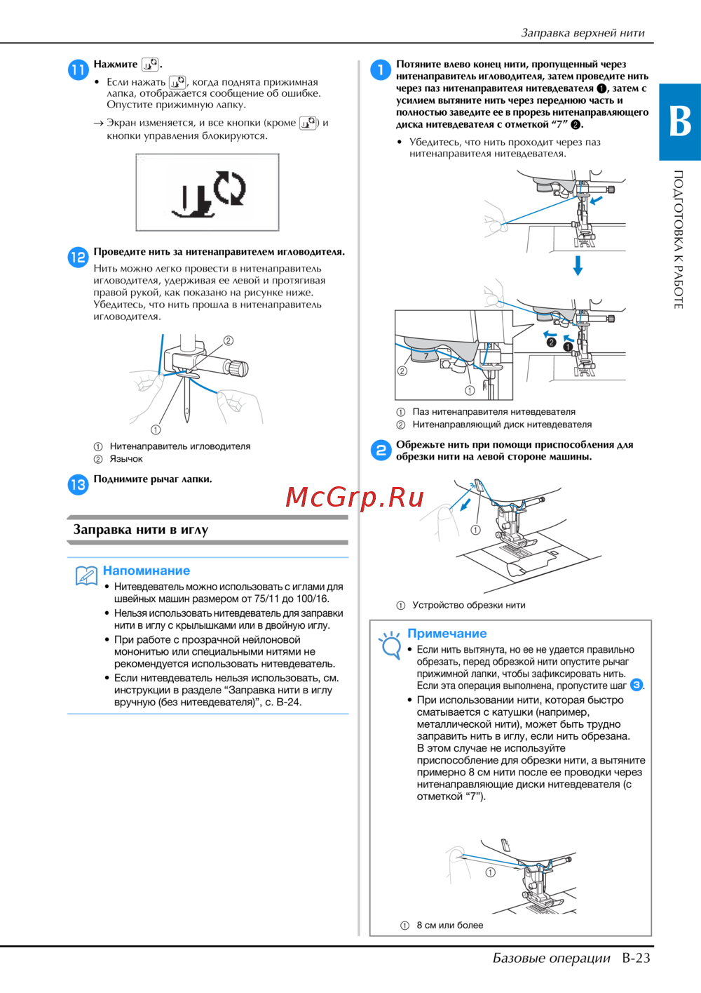 вручную (без нитевдевателя)”, с. B-24.
