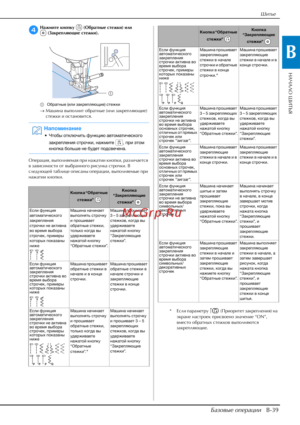 Изучите базовые операции шитья, включая выполнение обратных и закрепляющих стежков. Узнайте, как настроить автоматическое закрепление строчки для удобства.