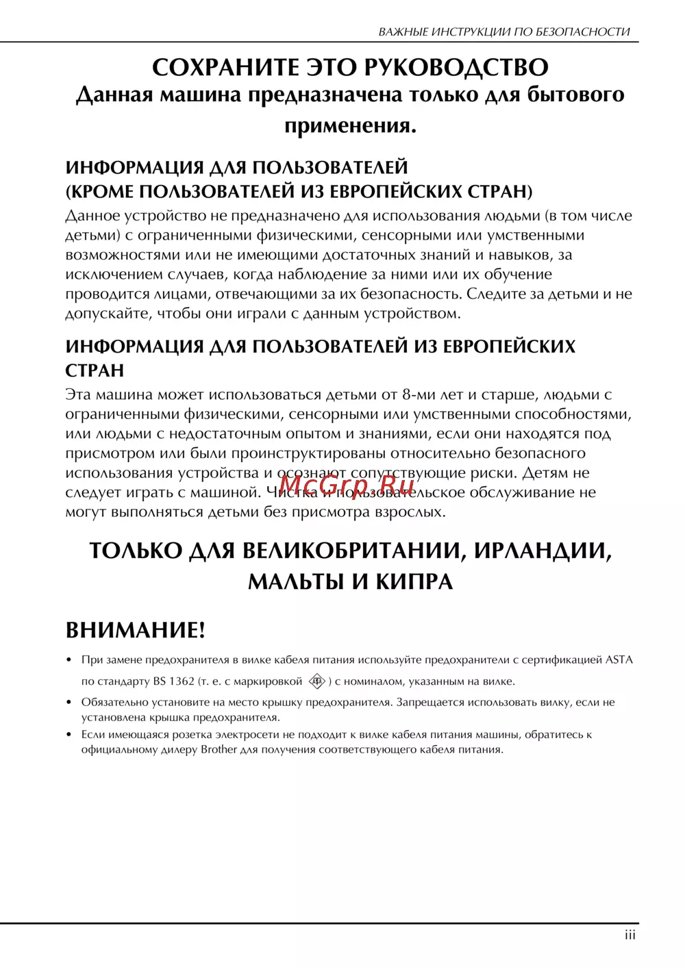 Brother INNOV-IS F420 — инструкции по безопасности для бытового устройства [5/144]