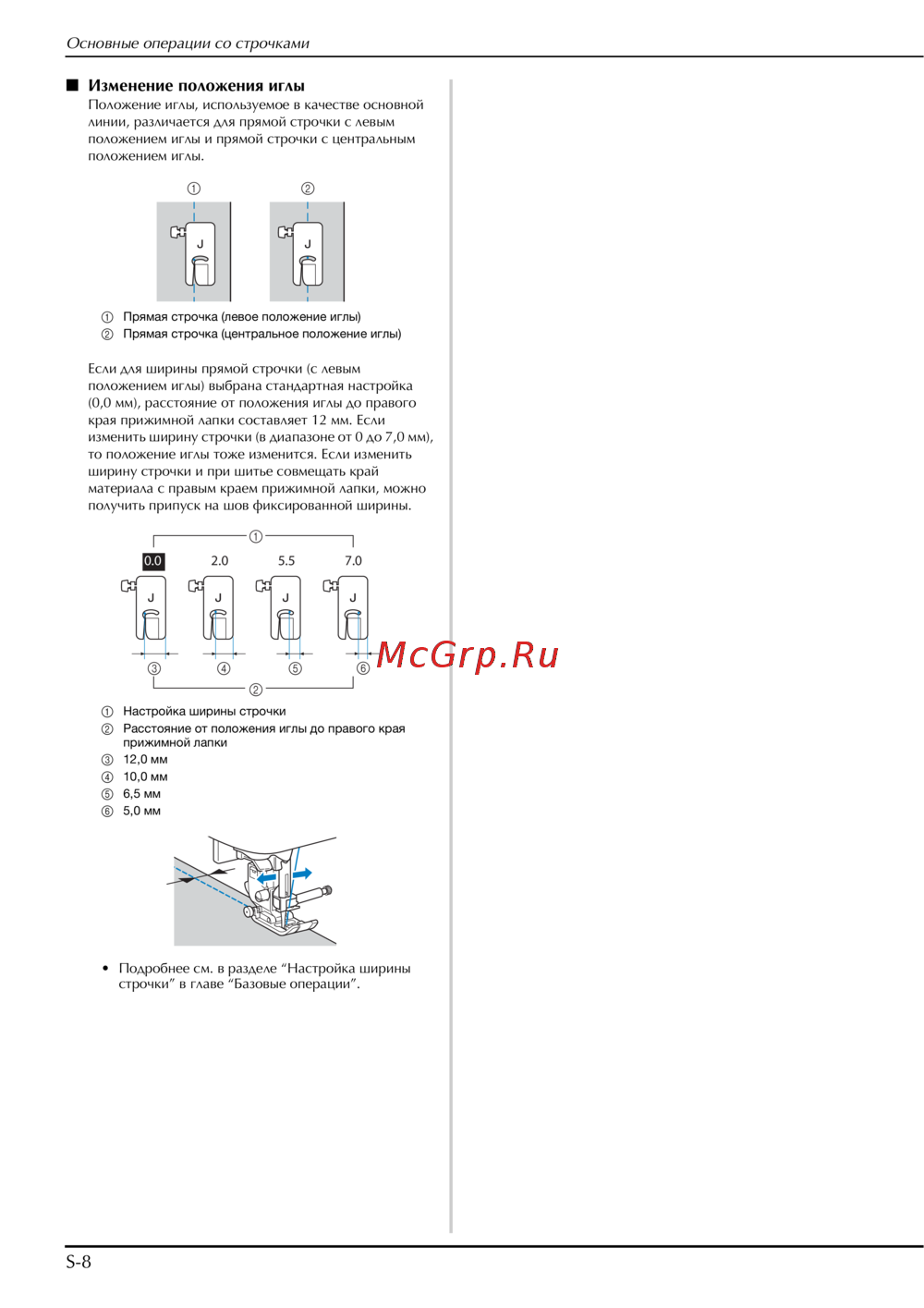 Brother INNOV-IS F420 — основные операции со строчками: изменение положения иглы и ширины [68/144]
