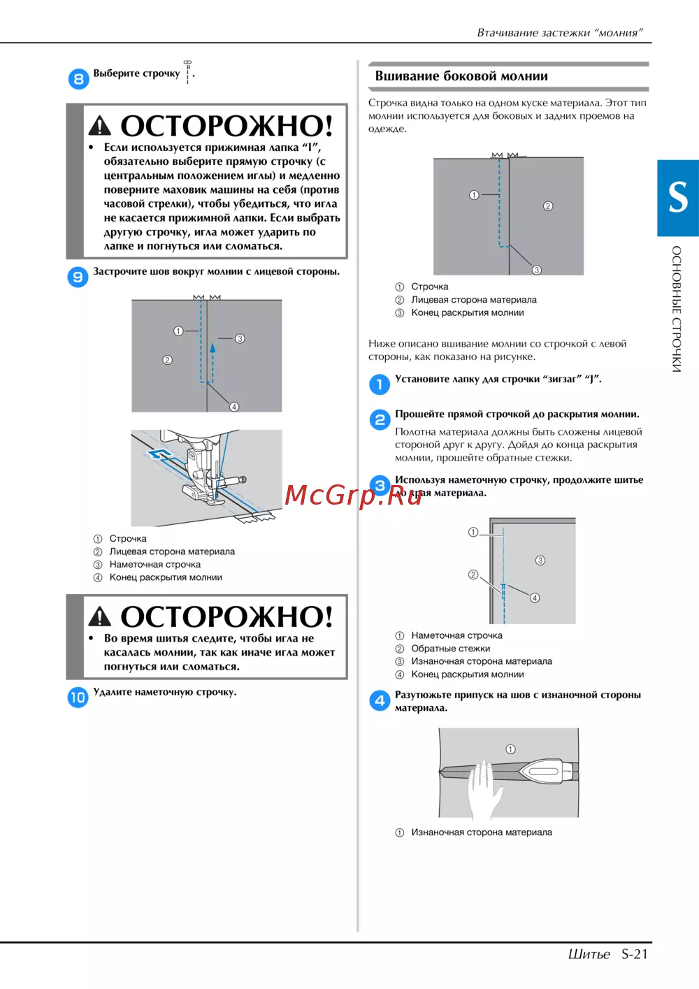 Brother INNOV-IS F420 — как правильно втачивать застежку молния в одежду [81/144]