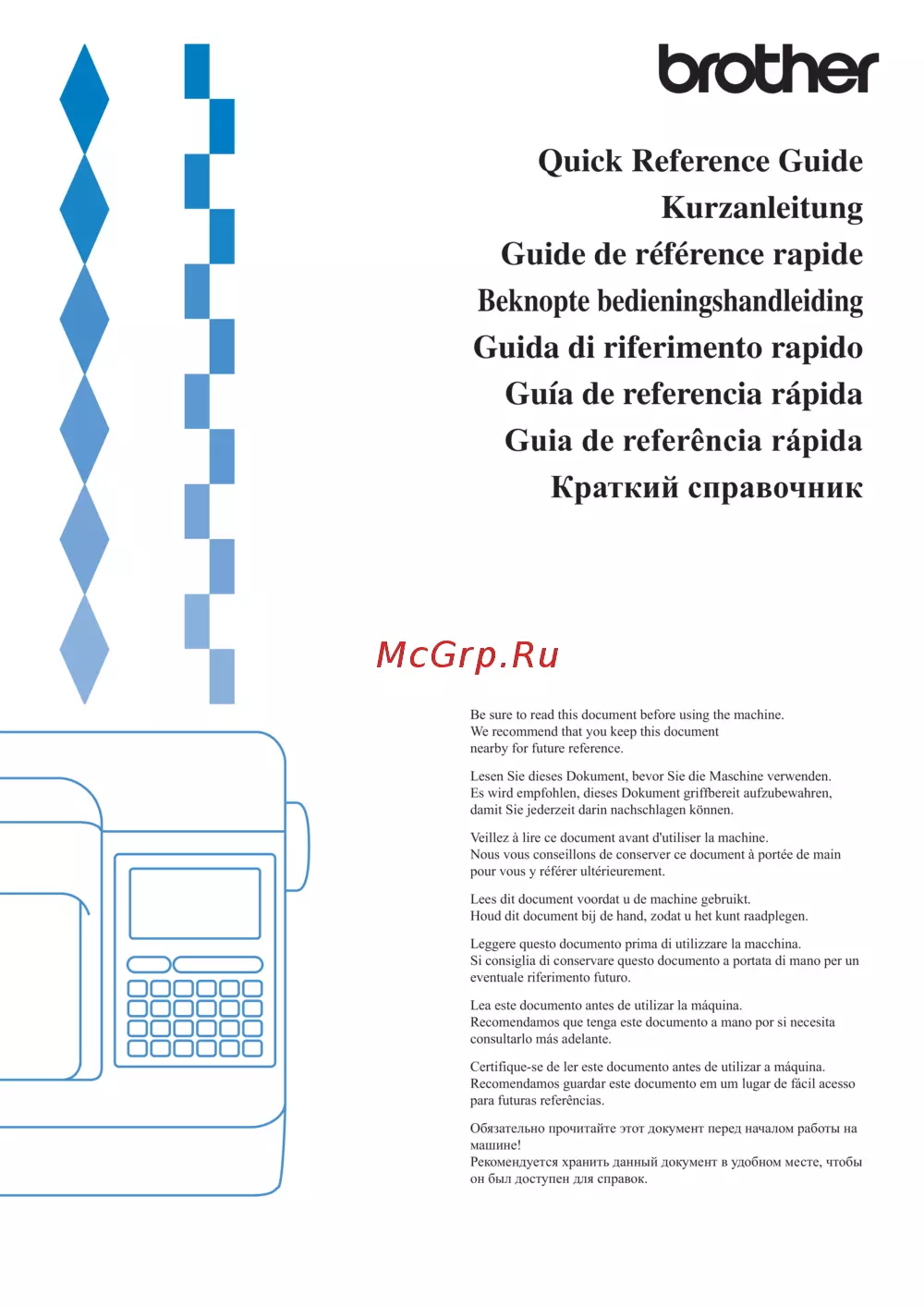 Перед использованием машины обязательно ознакомьтесь с кратким справочником. Храните его под рукой для удобства и быстрого доступа к важной информации.