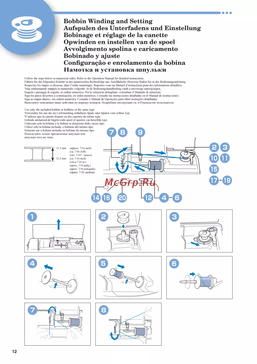 Следуйте пошаговым инструкциям для правильной намотки и установки шпульки. Подробные указания можно найти в руководстве пользователя.
