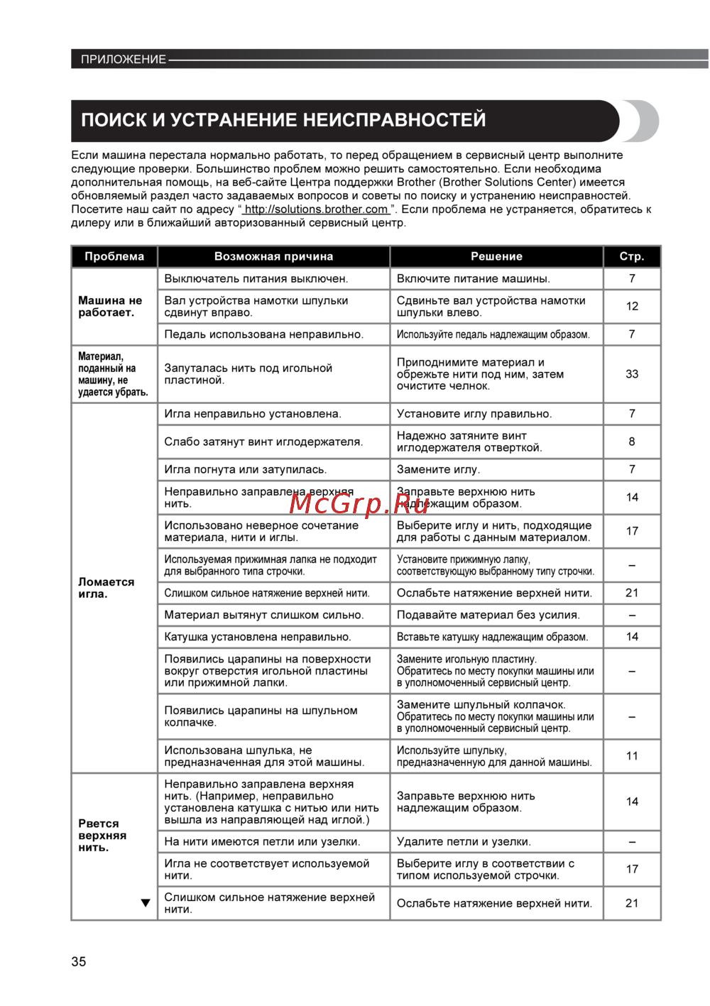 Brother LS 300 — поиск и устранение неисправностей в швейных машинах [36/40]