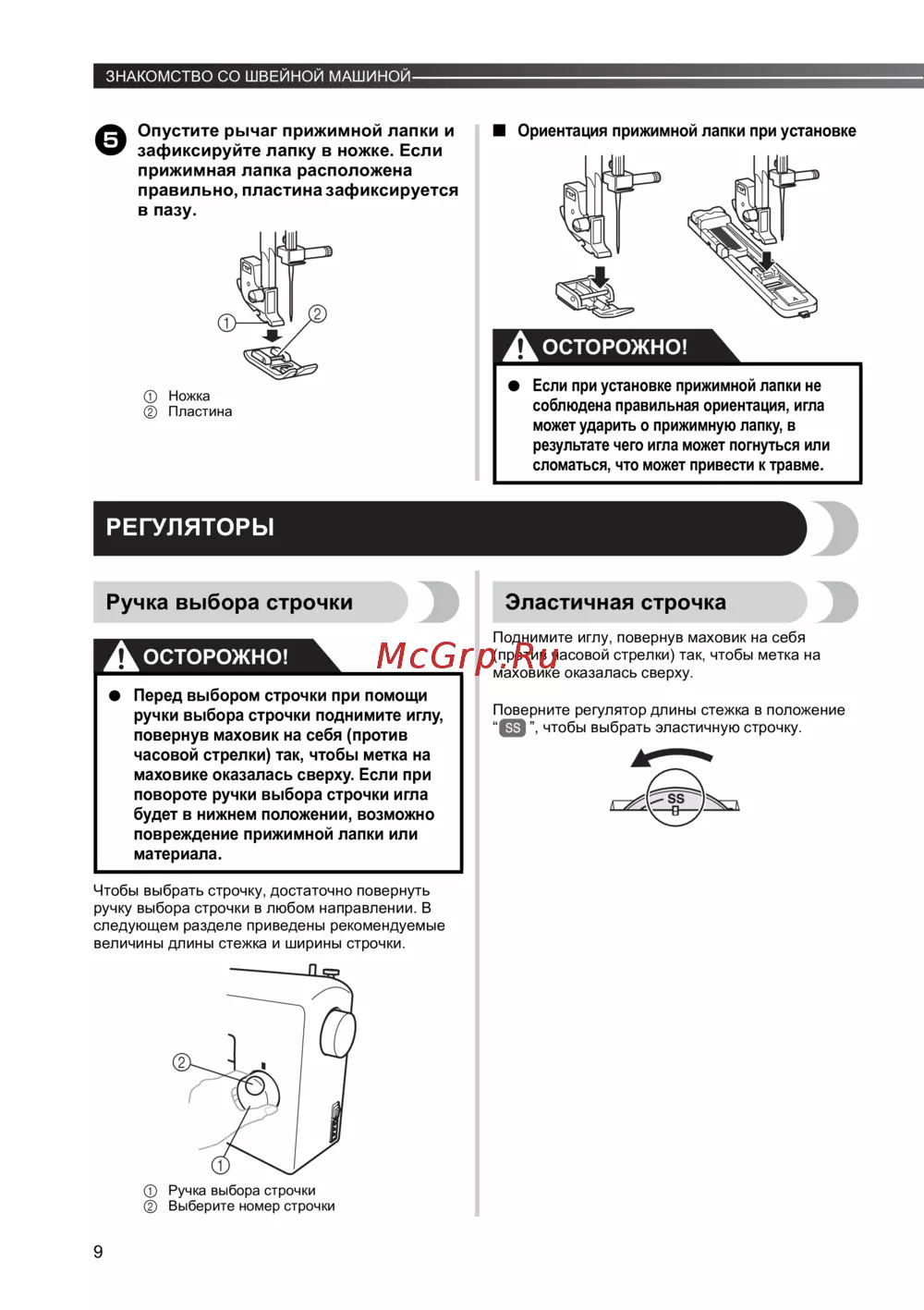 - Р регулятор длины стежк p.47