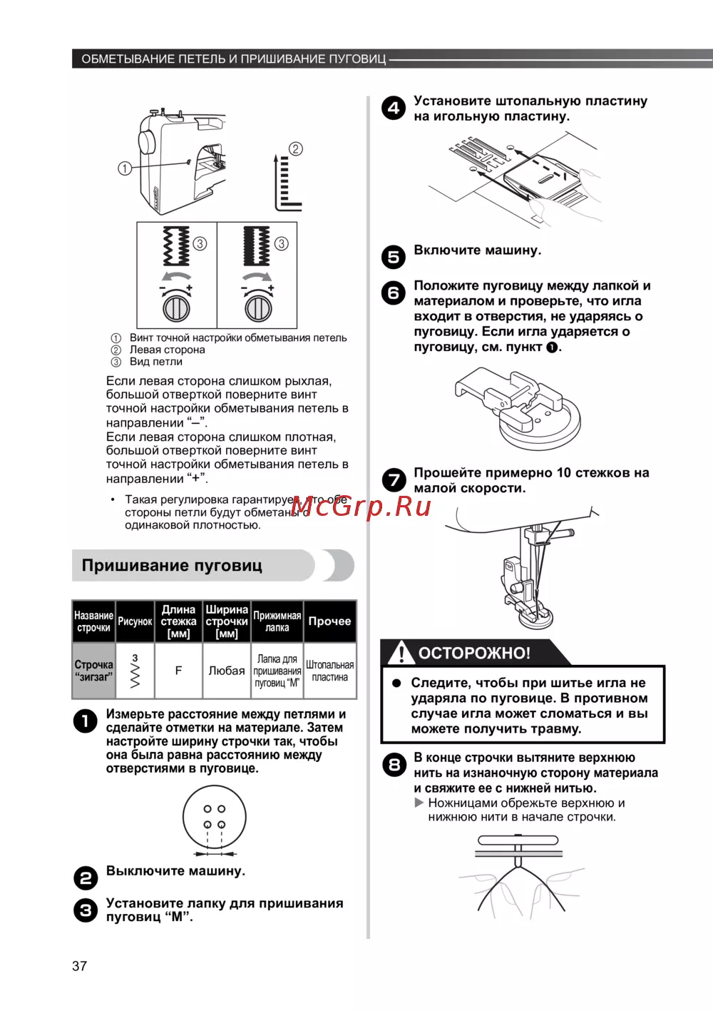 - Всегда внимательно следите за иглой не используйте погнутые или поврежденные иглы p.2