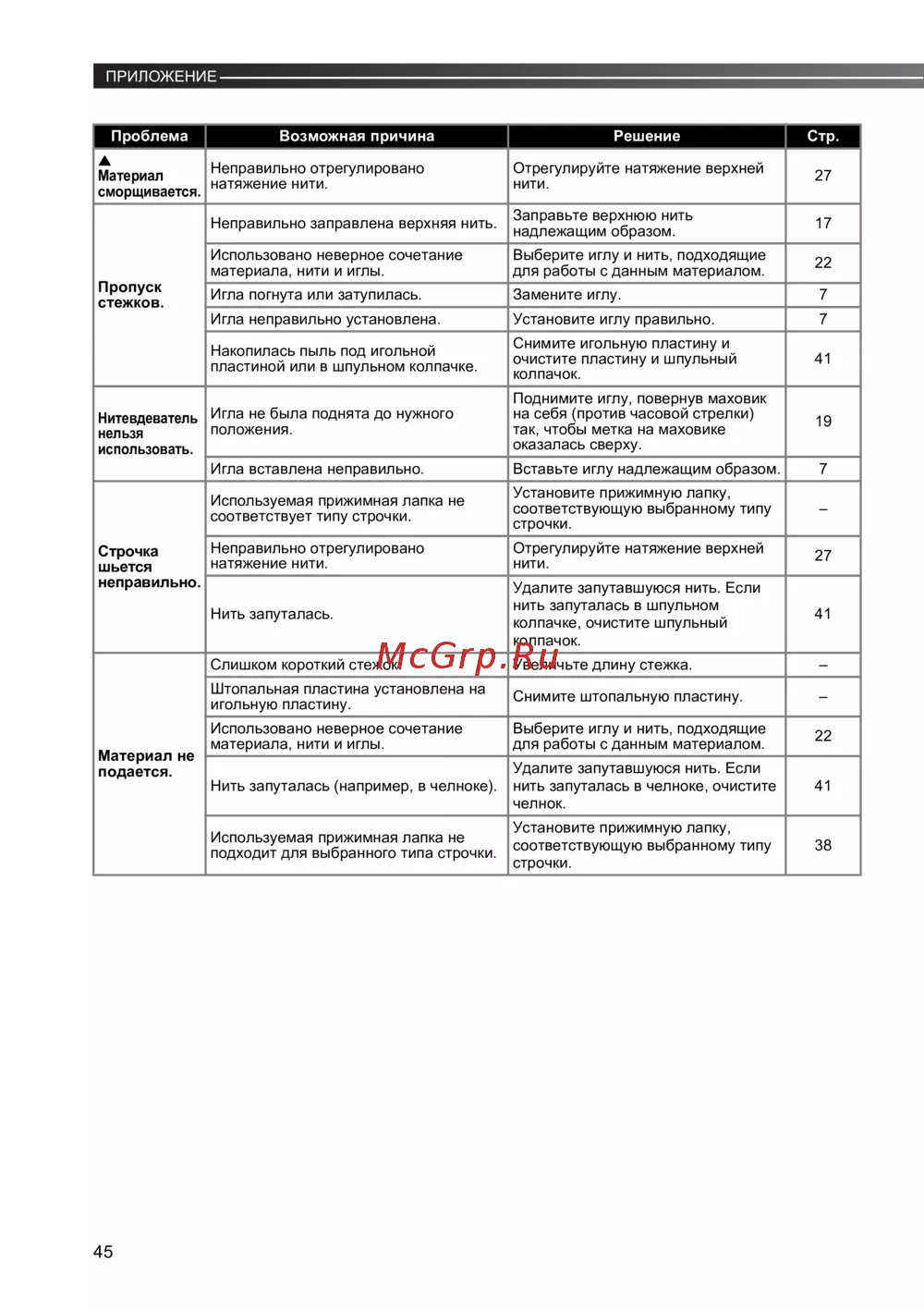 - Строчка шьется неправильно p.46