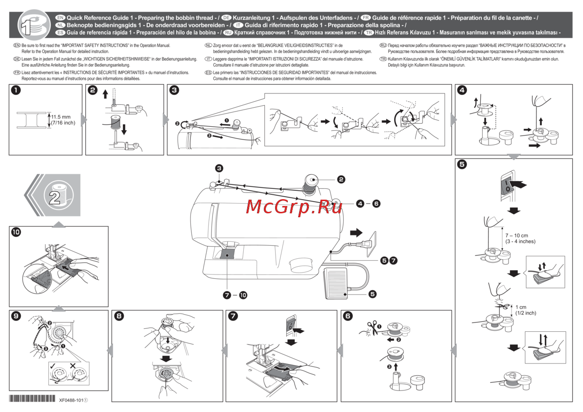 - Guía de referencia rápida 1 preparación del hilo de la bobina краткий справочник 1 подготовка нижней нити hızlı referans kılavuzu 1 masuranın sarılması ve mekik yuvasına takılması p.1