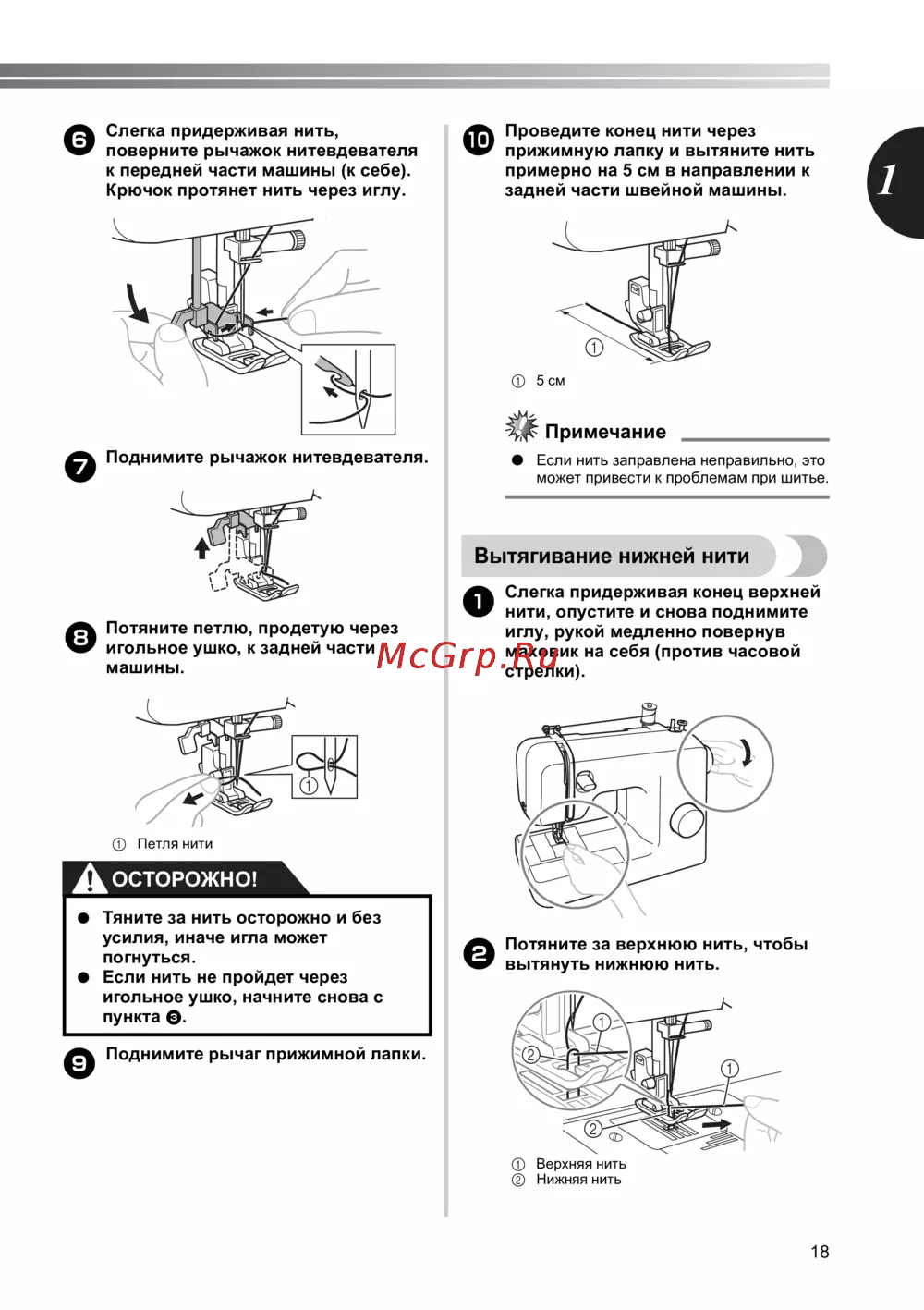 - Материал во время шитья и строго соблюдайте инструкции при шитье со свободной подачей материала чтобы не погнуть и не сломать иглу p.3