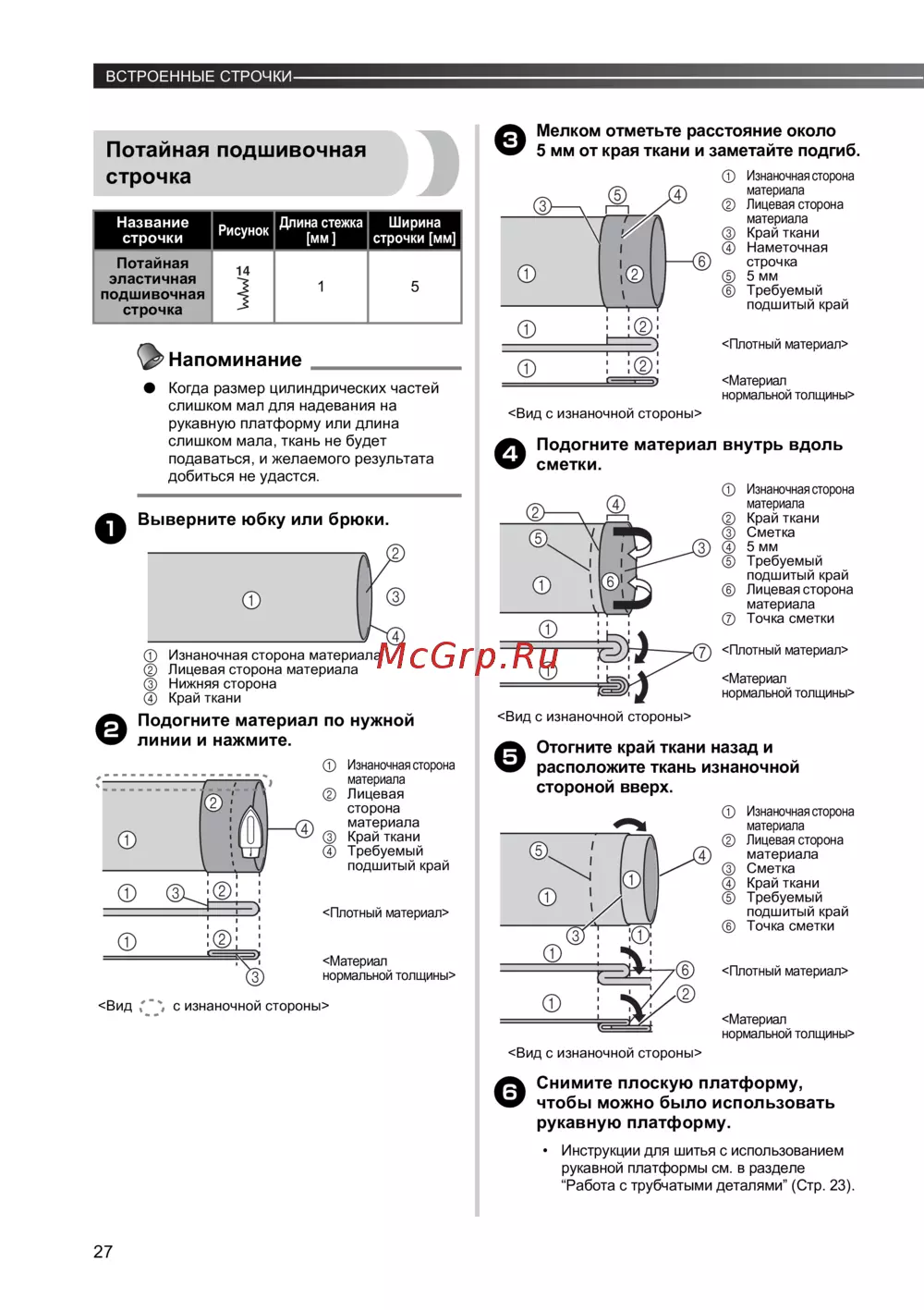 - Использование лапки для потайной строчки p.37