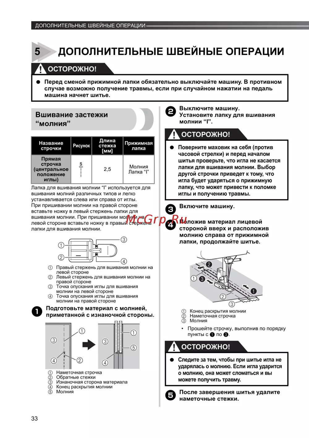 Brother STAR 17 — дополнительные швейные операции: вшивание молний и советы [34/44]