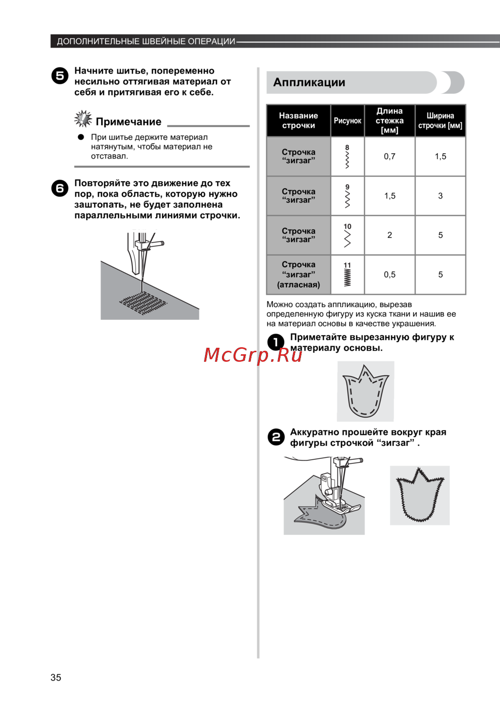 Brother STAR 17 — основы швейных операций: шитье и аппликации [36/44]