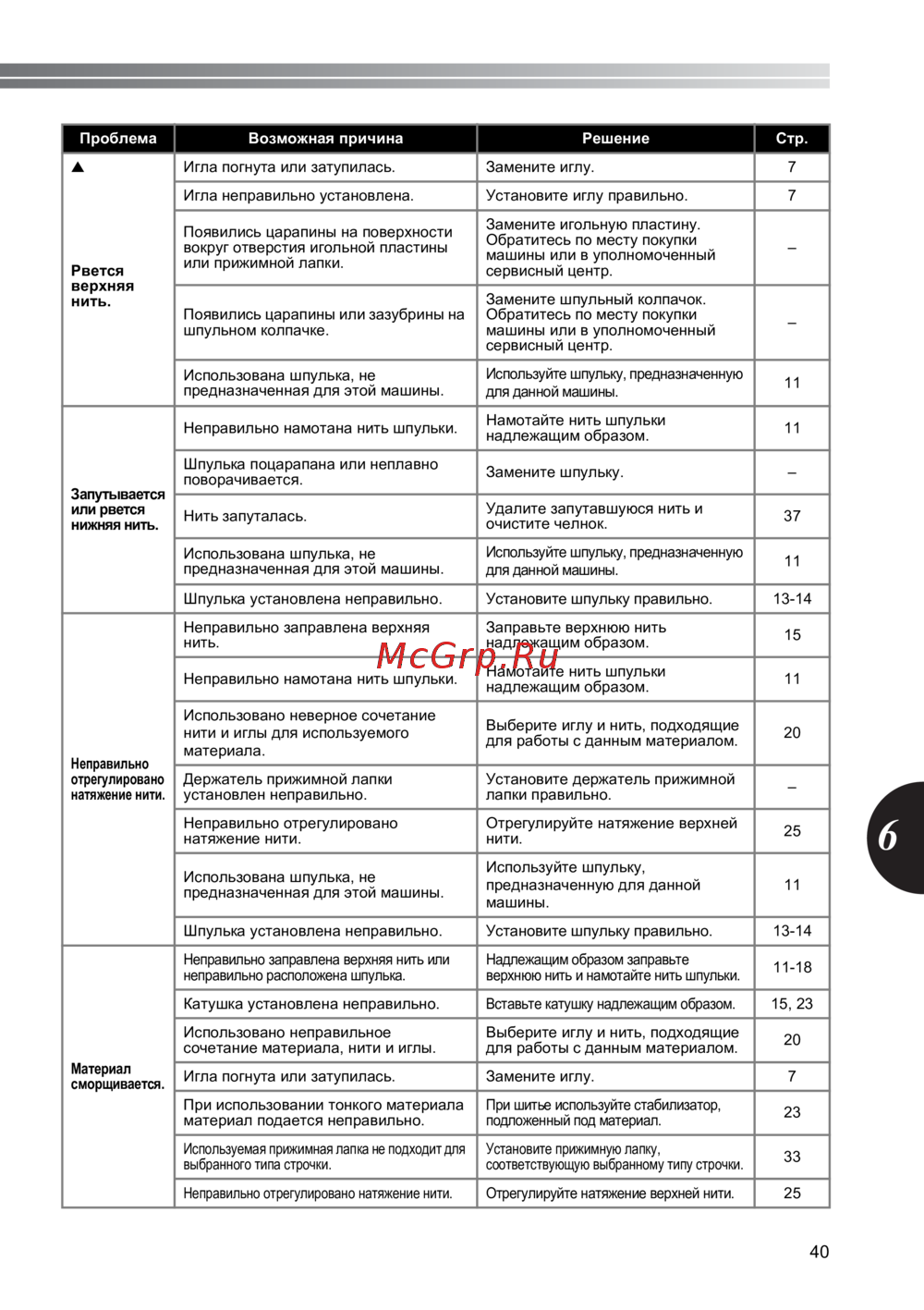 Brother STAR 17 — решение распространенных проблем швейных машин [41/44]