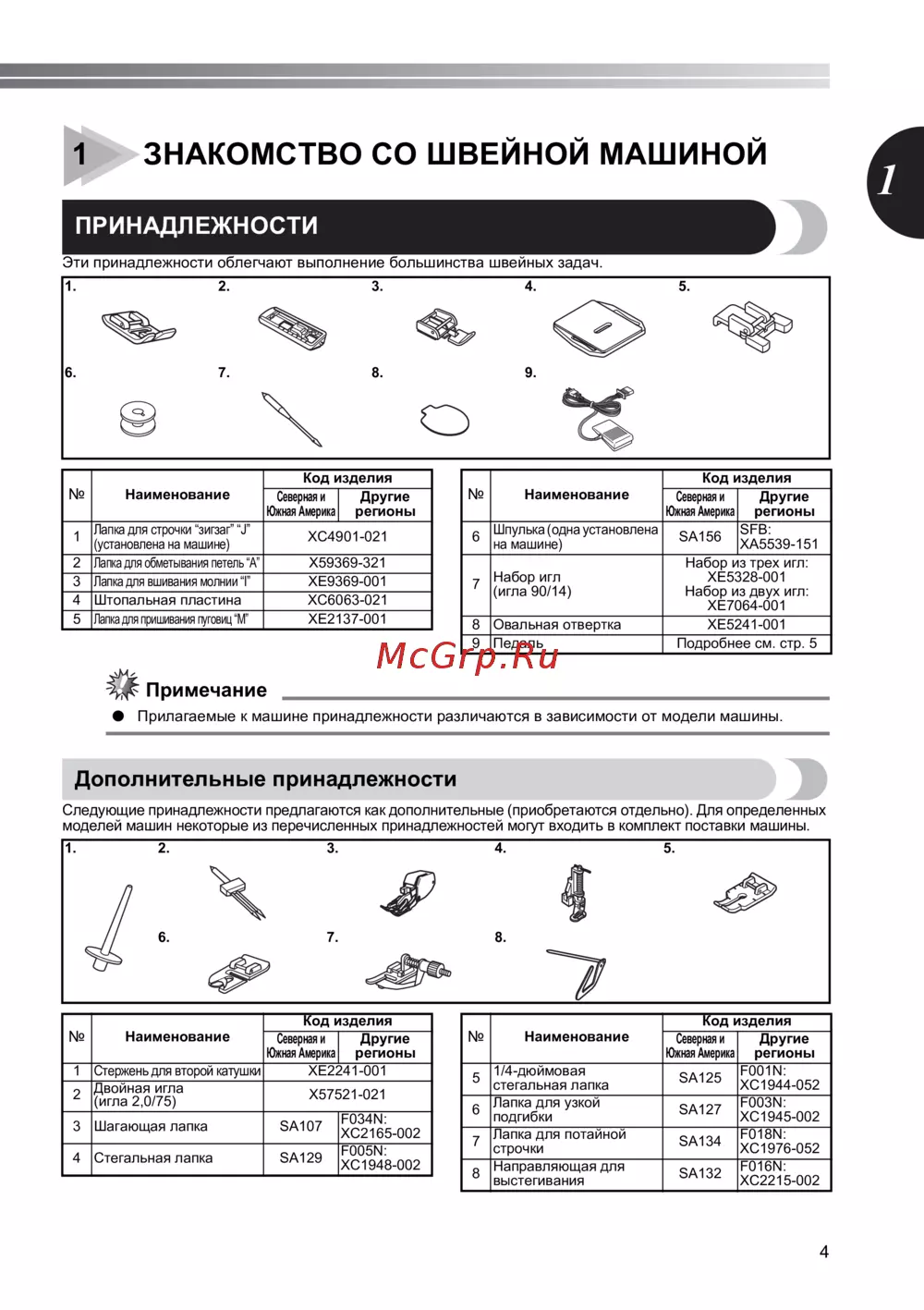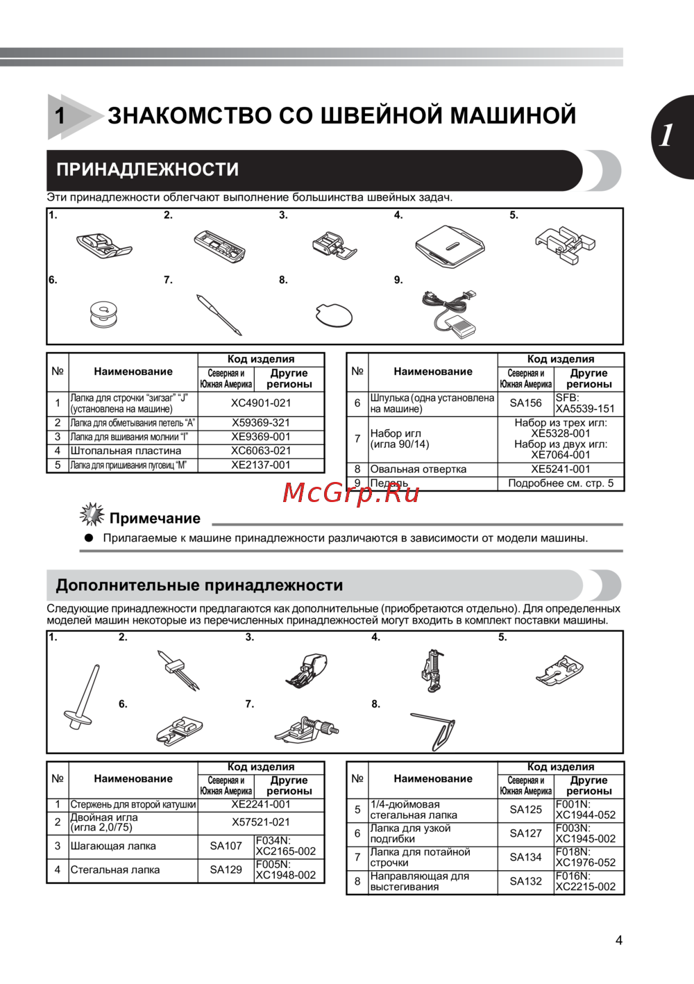 моделей машин некоторые из перечисленных принадлежностей могут входить в комплект поставки машины.