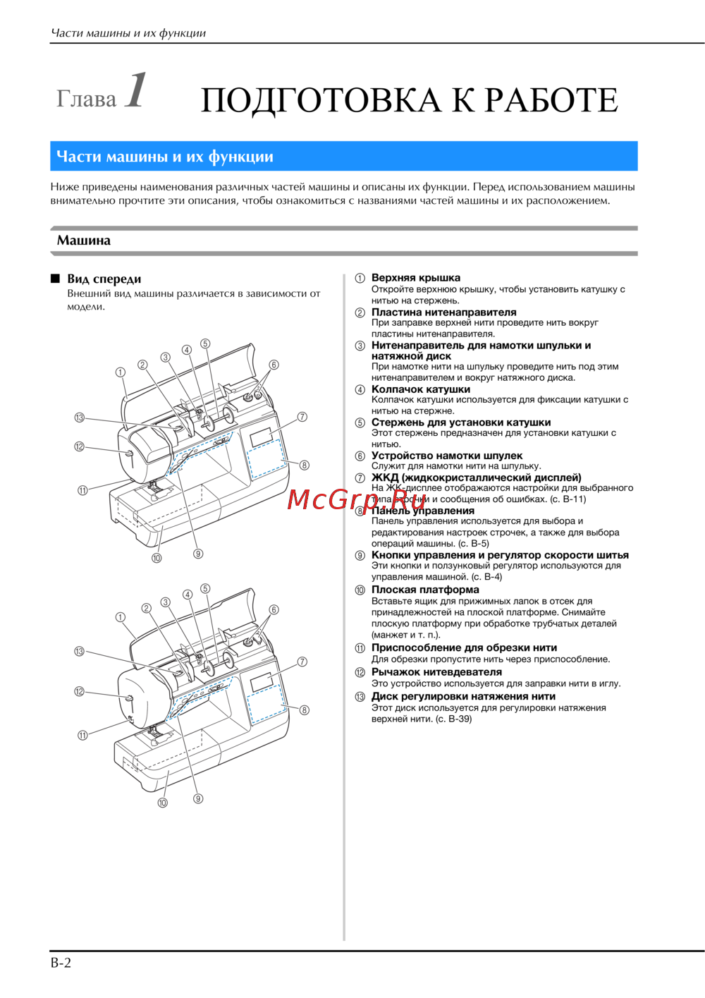внимательно прочтите эти описания, чтобы ознакомиться с названиями частей машины и их расположением.