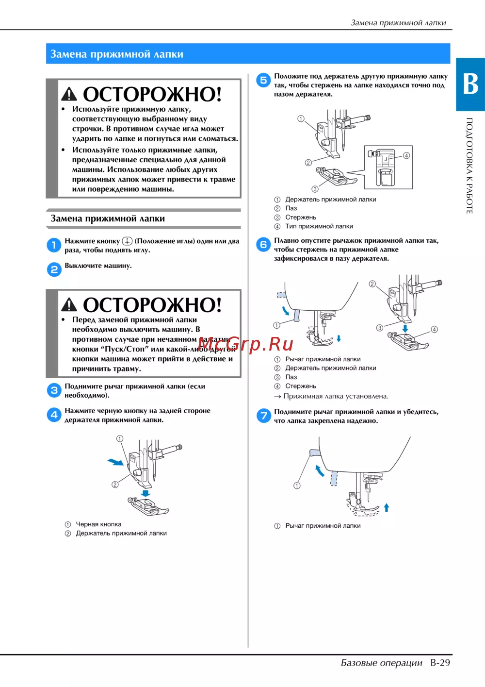 - Замена прижимной лапки 29 p.7
