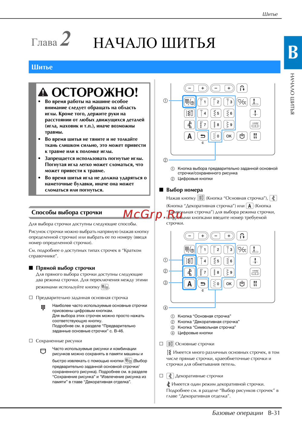 Изучите базовые операции шитья, включая выбор строчки и советы по безопасности. Узнайте о различных типах строчек и их использовании.