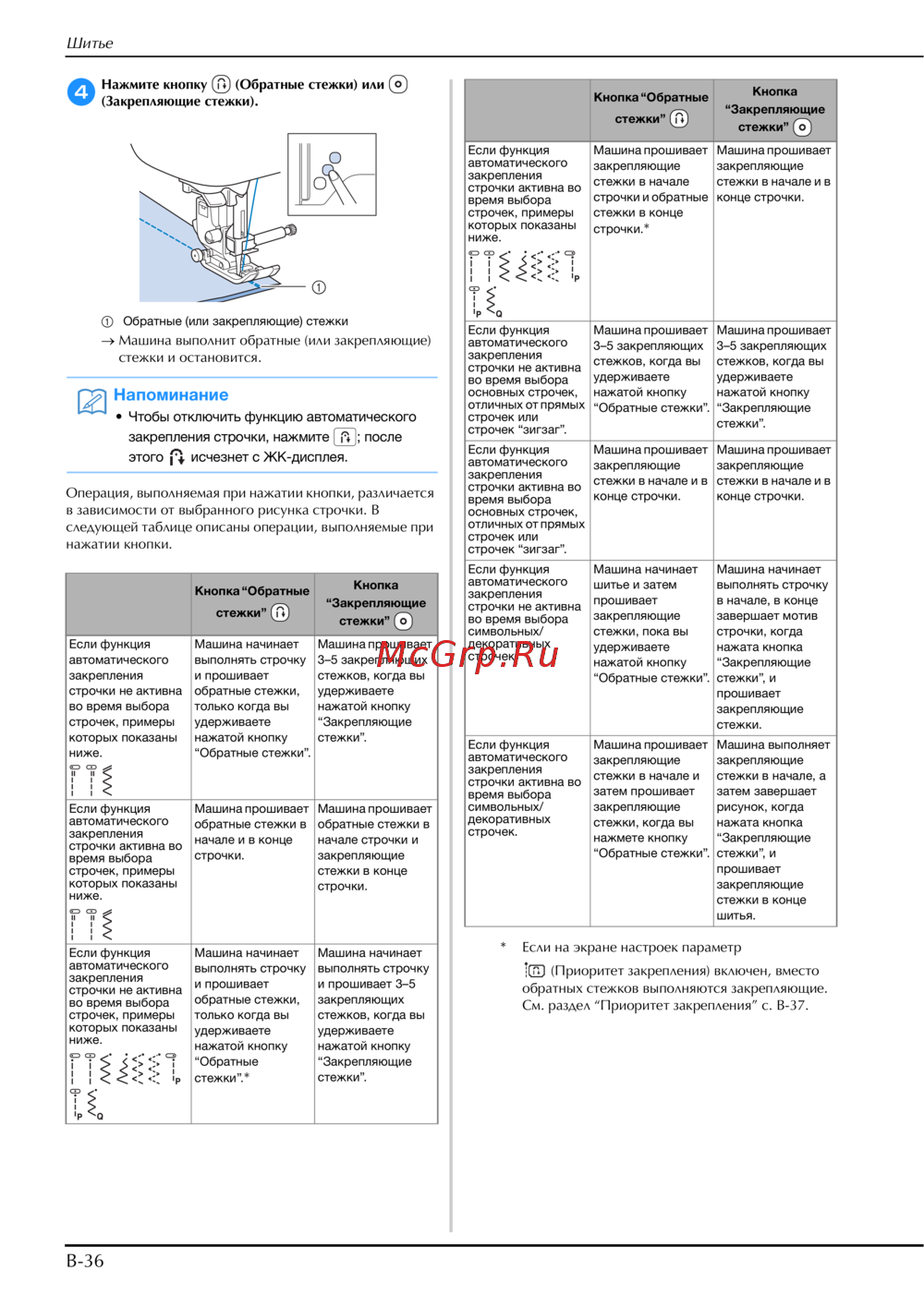 Brother INNOV-IS F410 — обратные и закрепляющие стежки: как использовать функции шитья [44/128]