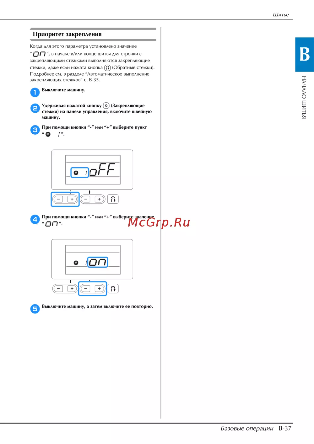 Изучите базовые операции шитья, включая настройку закрепляющих стежков. Узнайте, как правильно использовать функции вашей швейной машины для качественного шитья.