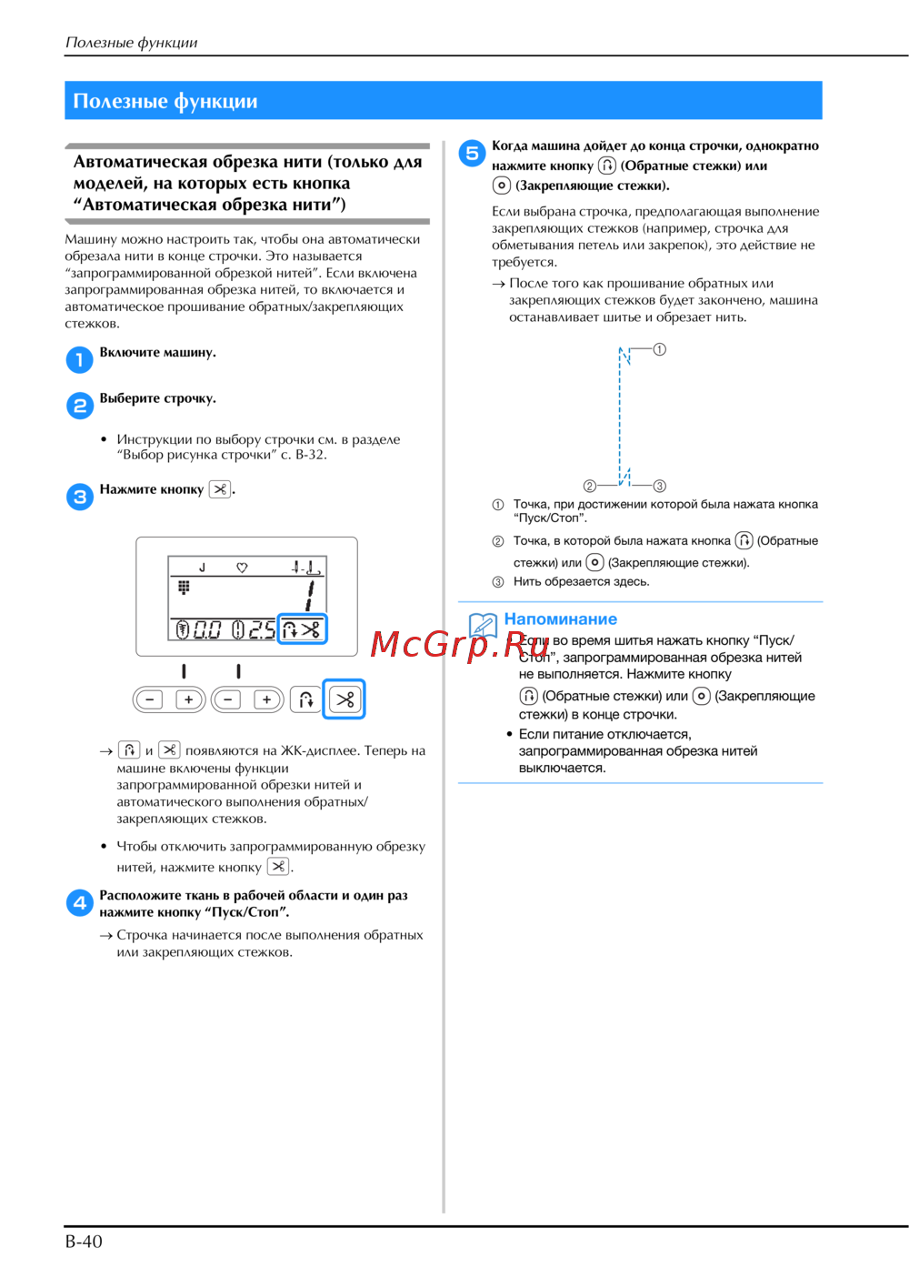 Brother INNOV-IS F410 — полезные функции автоматической обрезки нити в швейных машинах [48/128]
