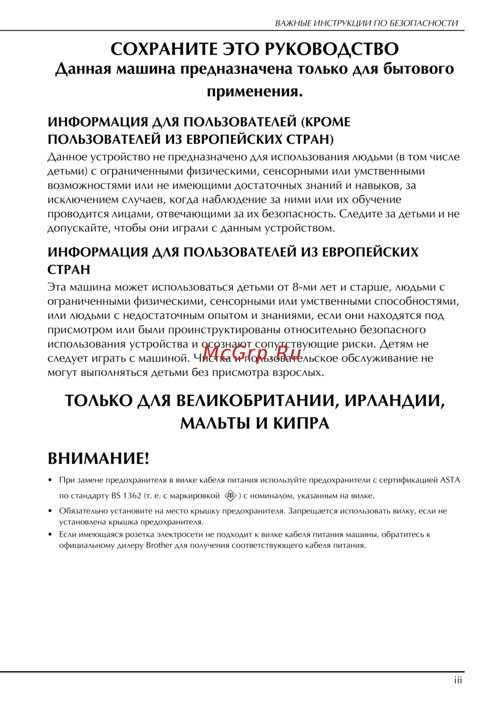 Brother INNOV-IS F410 — инструкции по безопасности для бытового устройства [5/128]