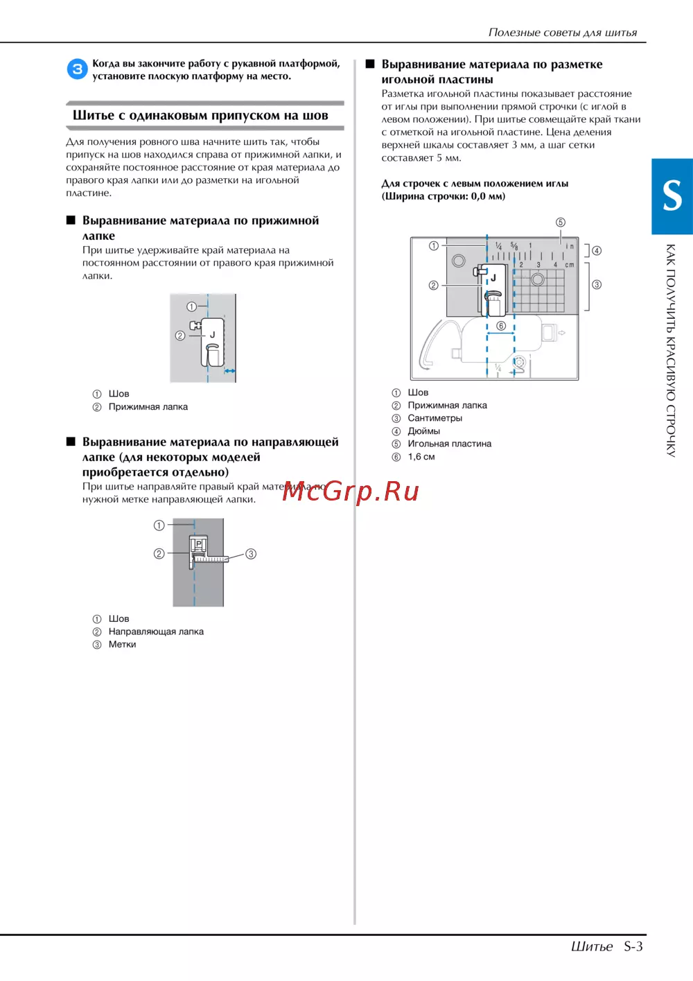 - Убедитесь в правильной установке шпульного колпачка в противном случае возможна поломка иглы p.106