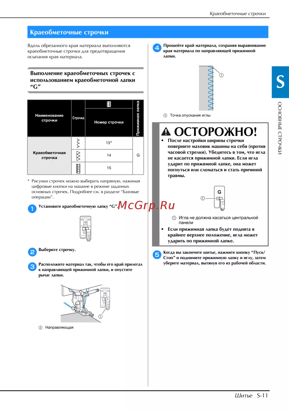 Установите краеобметочную лапку “G”.